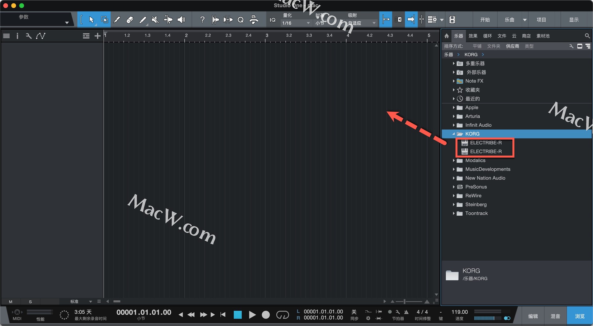 安装完成后打开studio one,在乐器-供应商中找到安装好的插件,拖动到左侧空白区