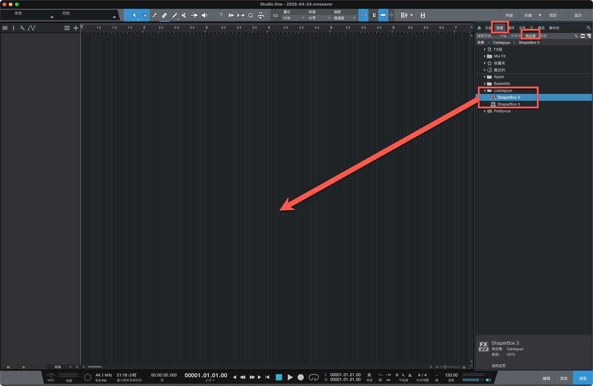 打开Studio One,在效果—供应商中找到安装好的插件,拖到软件空白处即可开始使用