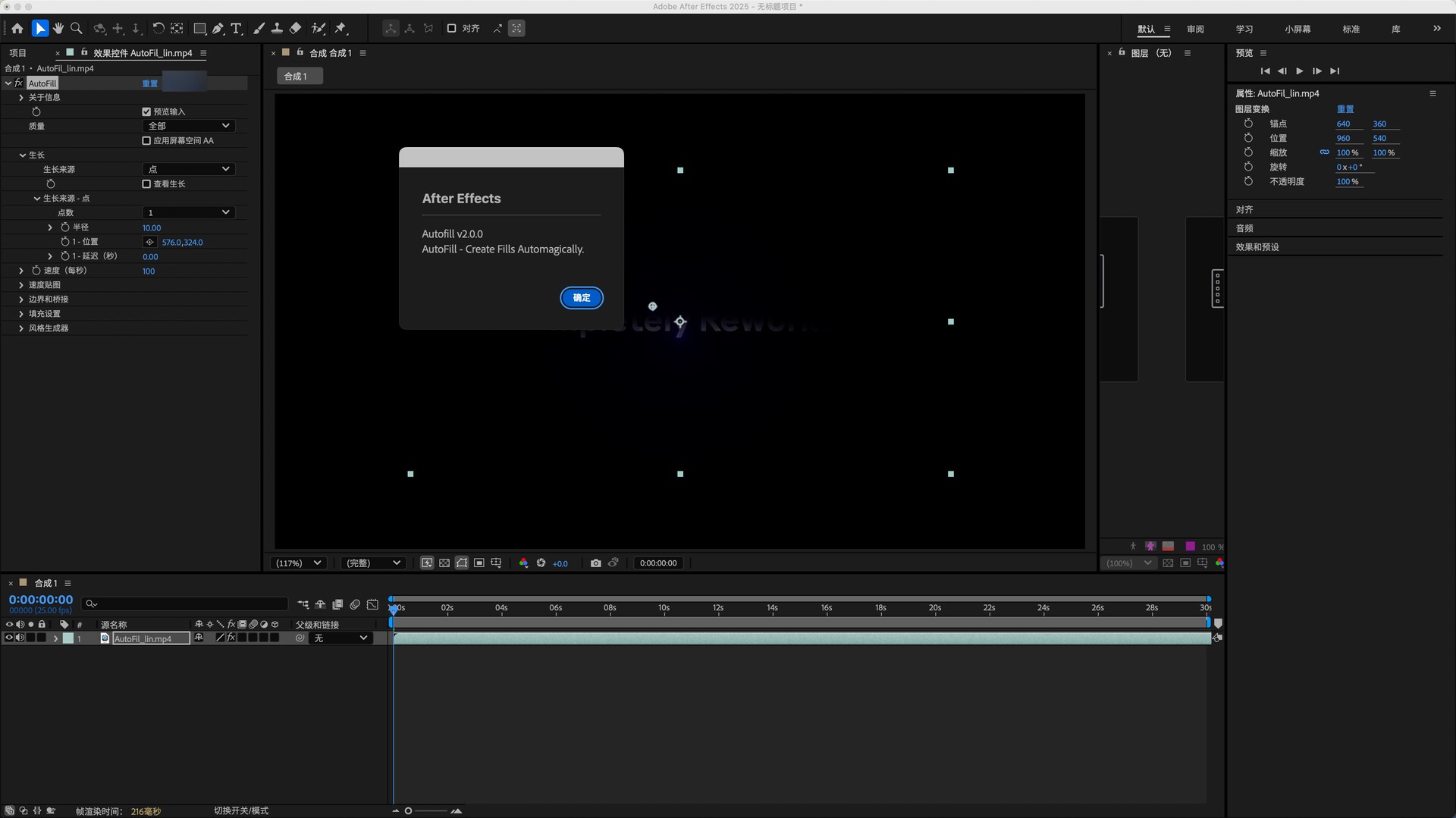 - 只需应用自动填充,设置增长起点,然后播放即可。就这么简单。AutoFill是GPU加速的,因此您可以实时预览结果(取决于硬件)。