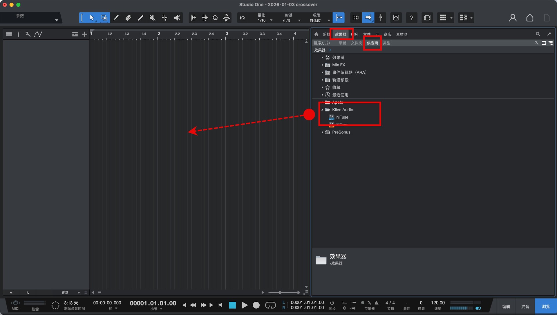 打开Studio One在效果-供应商下即可找到插件,拖动到左侧