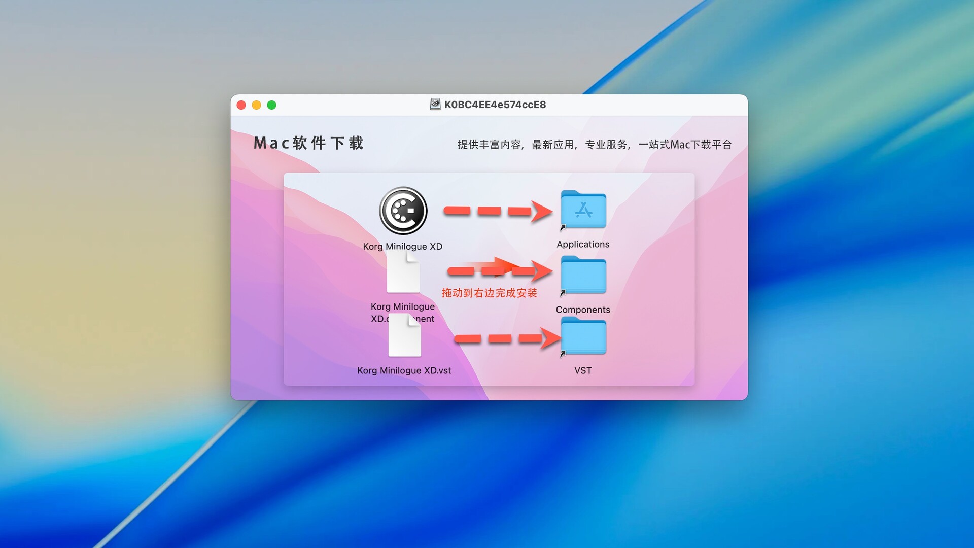 软件可单独使用,也可配合音频软件使用,如Studio One本站下载完成后,将左侧软件拖动到右侧文件夹即可