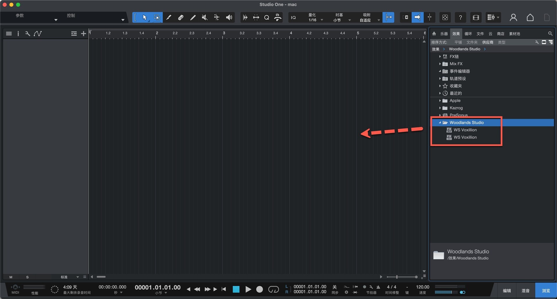 安装完成后打开studio one,在效果-供应商处找到安装好的插件,拖动到左侧空白区