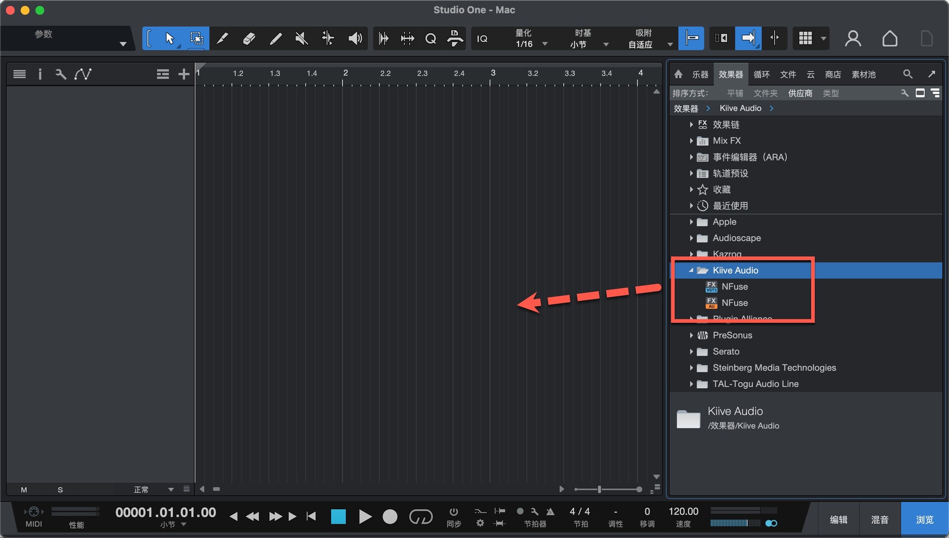 打开Studio One在效果-供应商下即可找到插件,拖动到左侧即可