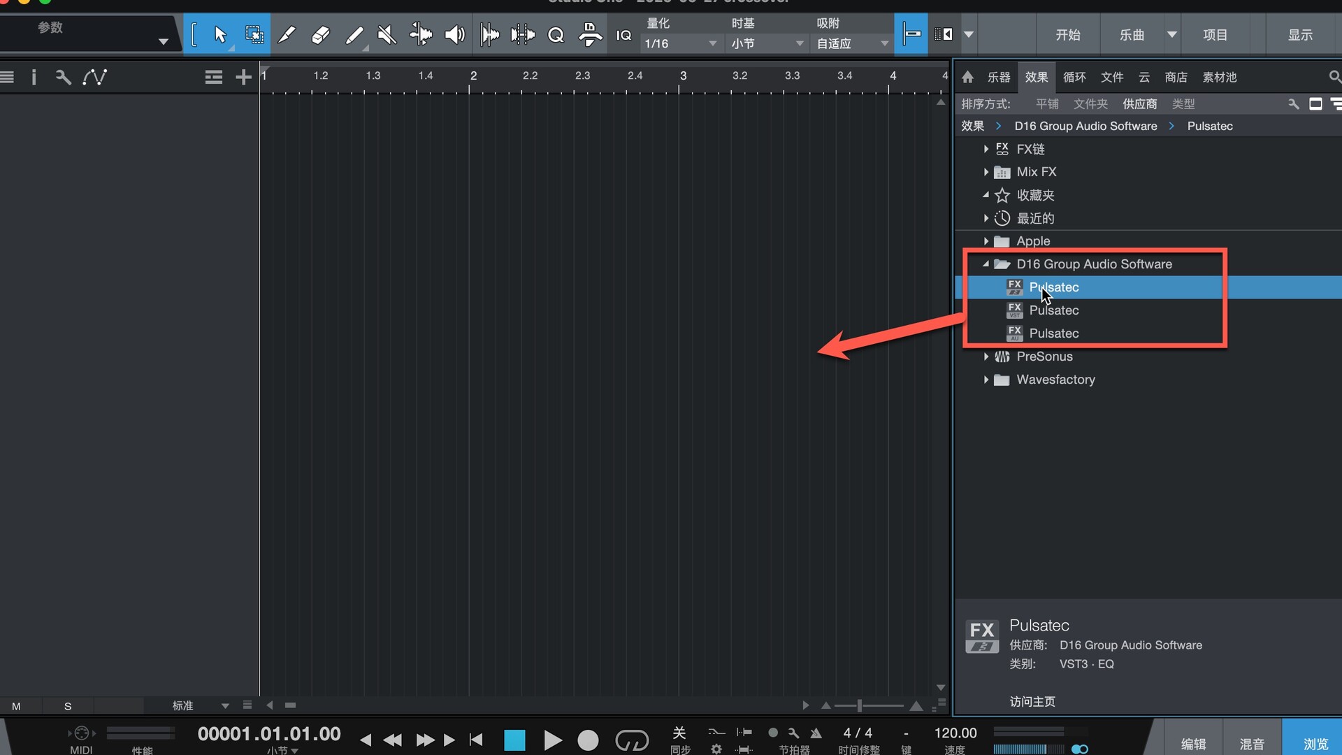 打开studio one 在效果-供应商中即可找到安装好的插件,如图