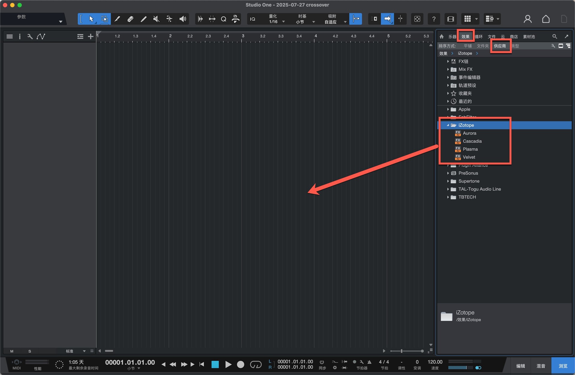 打开studio one,在效果--供应商下,可以找到此插件。