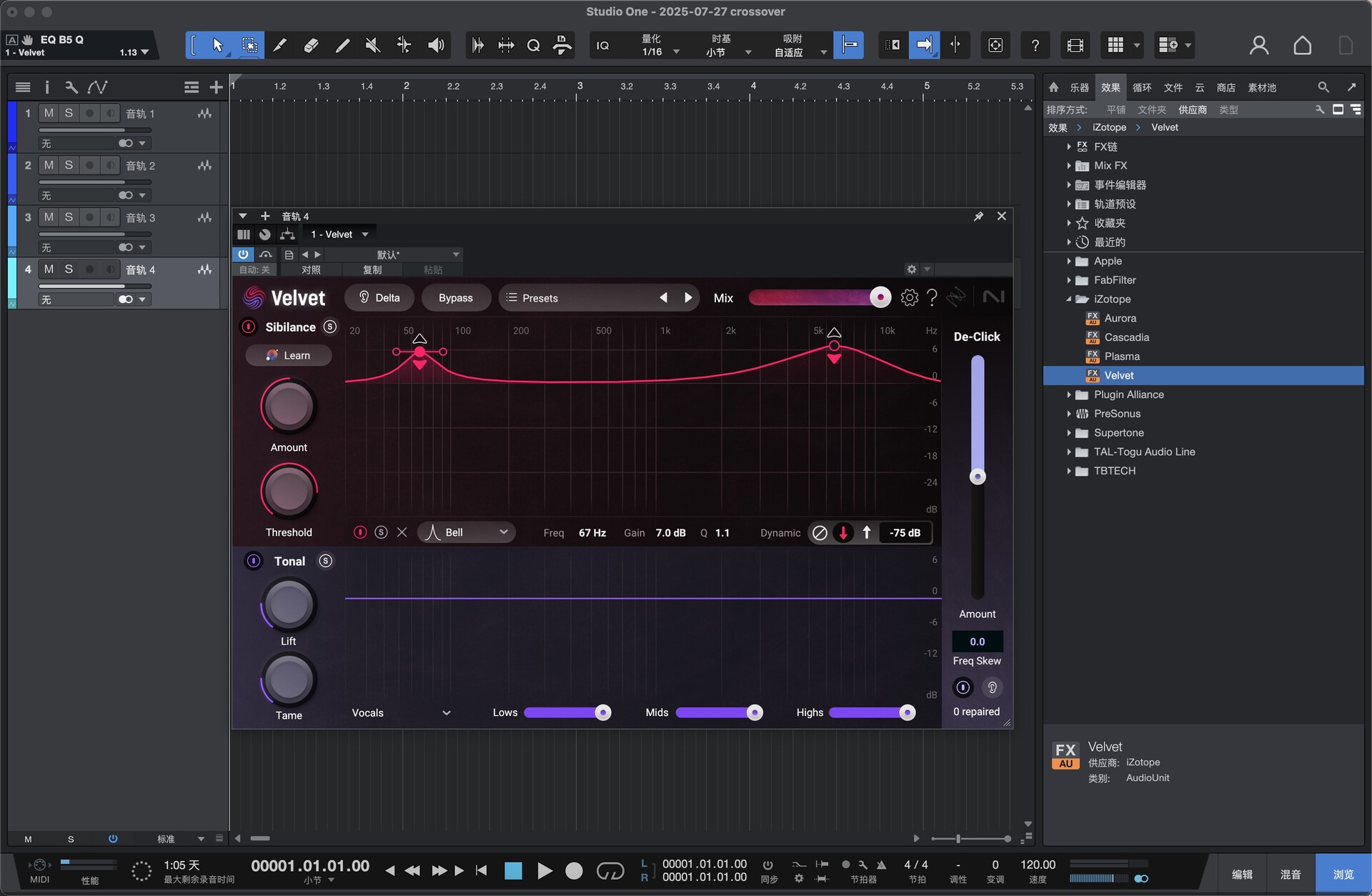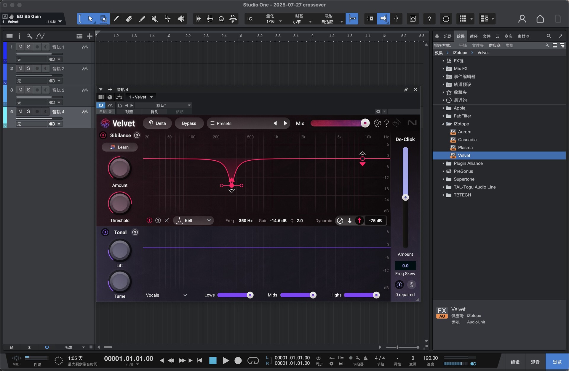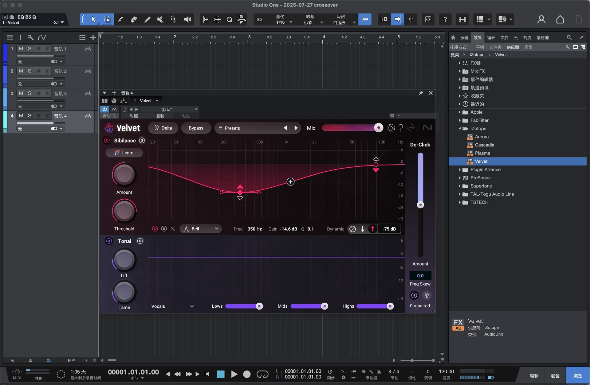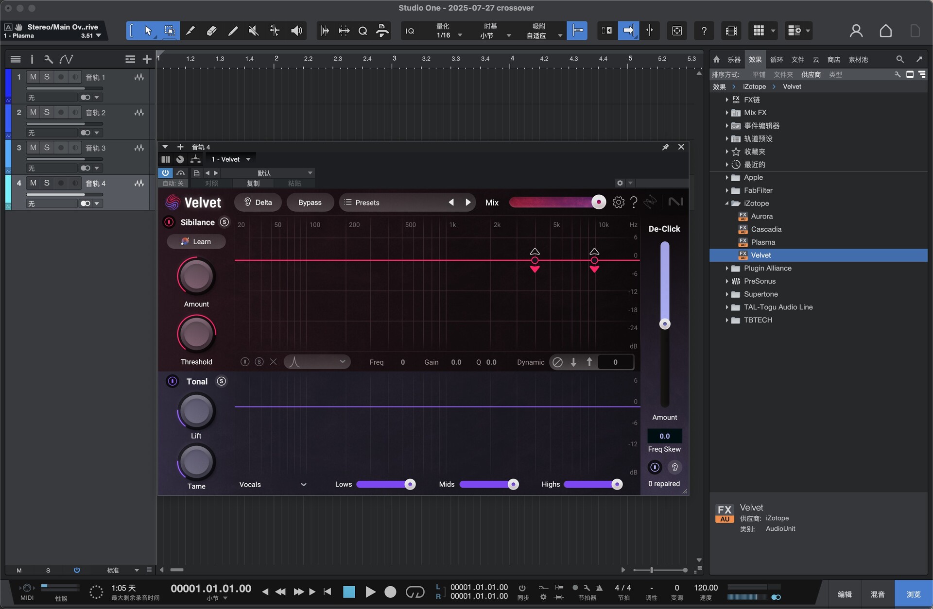 ✓ Velvet 去嘶声插件