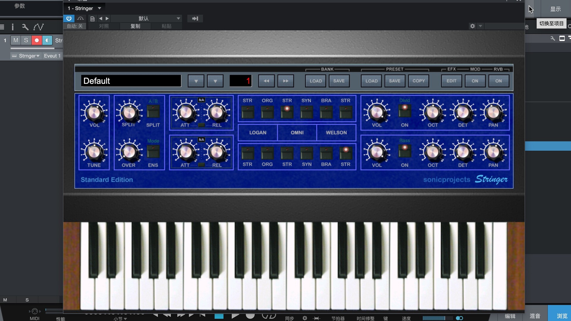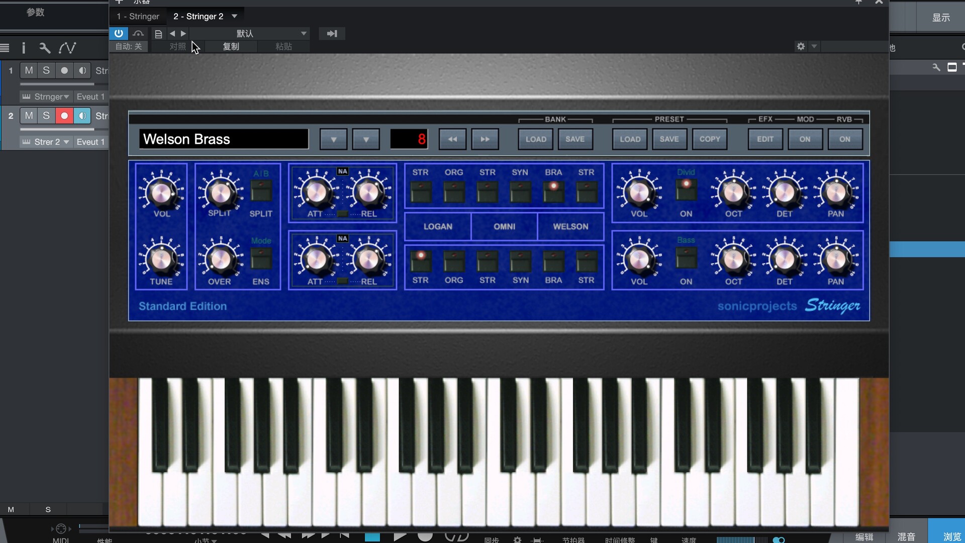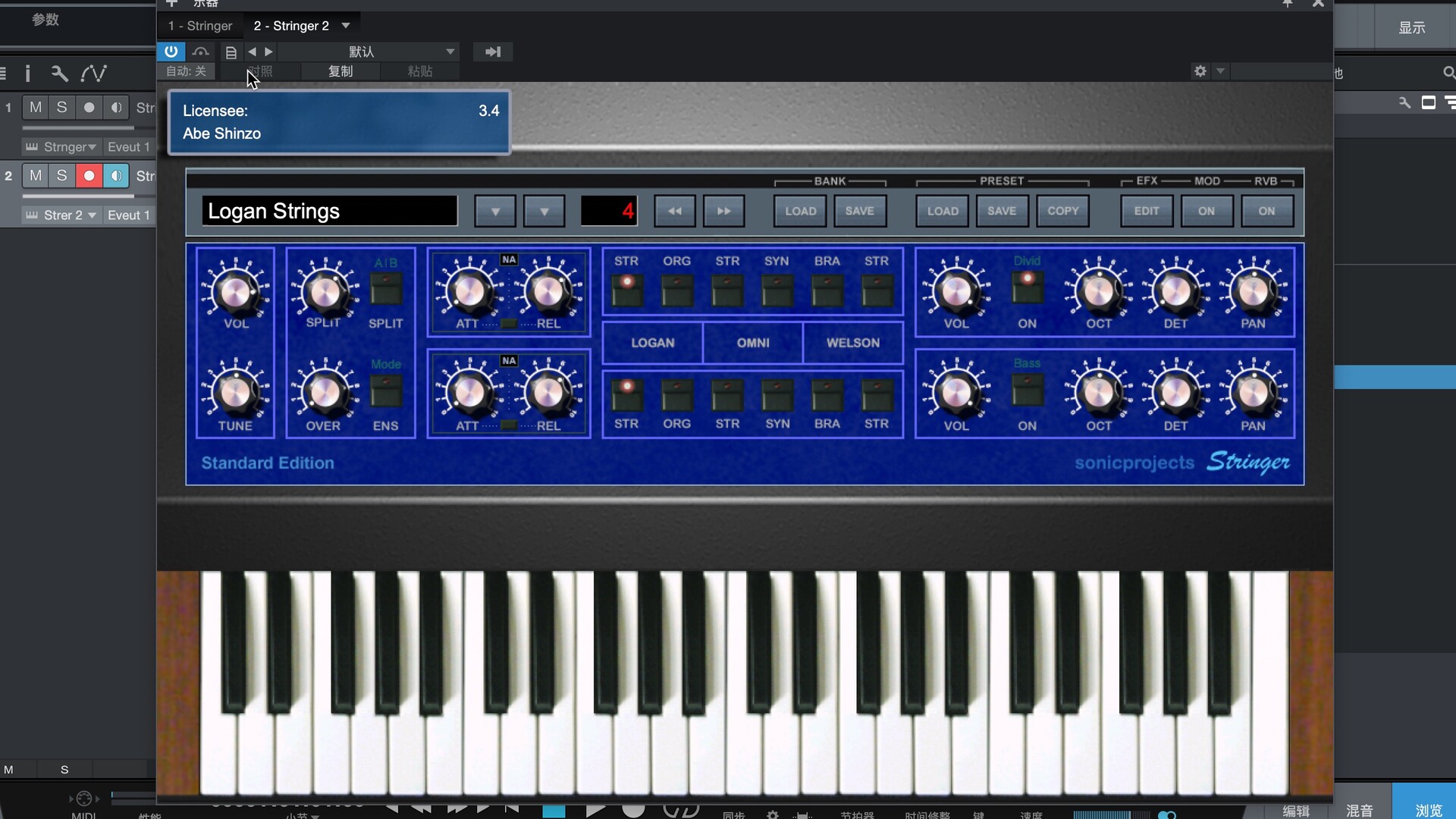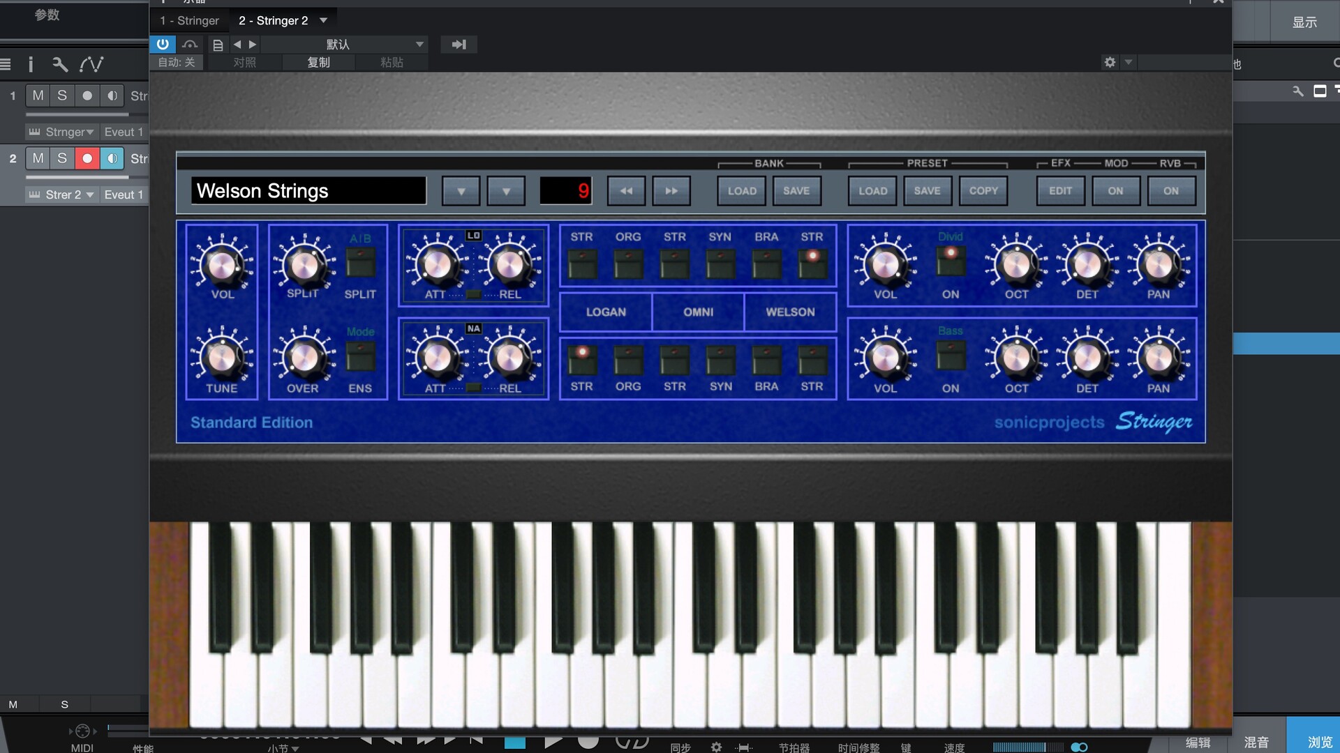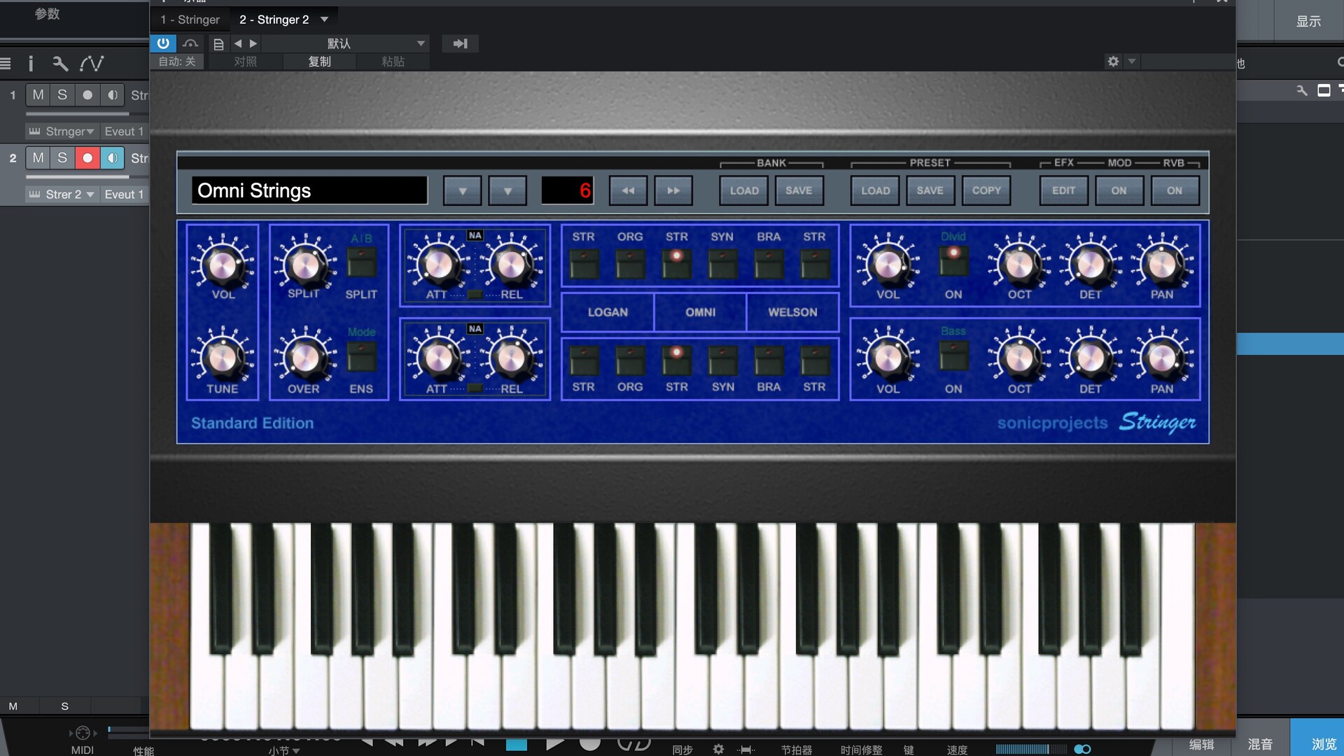 Stringer 包含 ARP Omni II、Logan String Melody II 和 Welson Symphony 的采样集,并有两个引擎,可以混合和叠加: