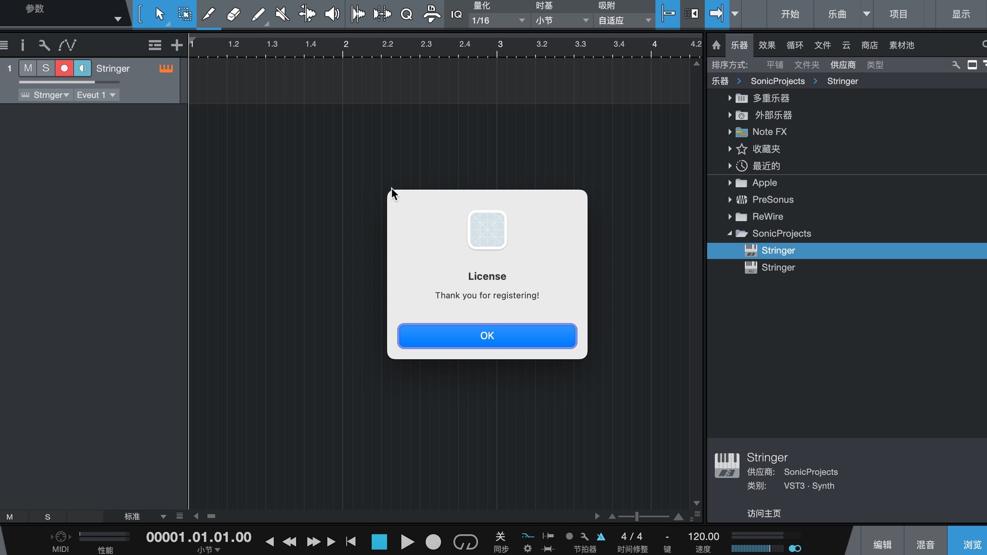 打开studio one,再乐器-供应商下即可找到安装好的插件,拖动到左侧