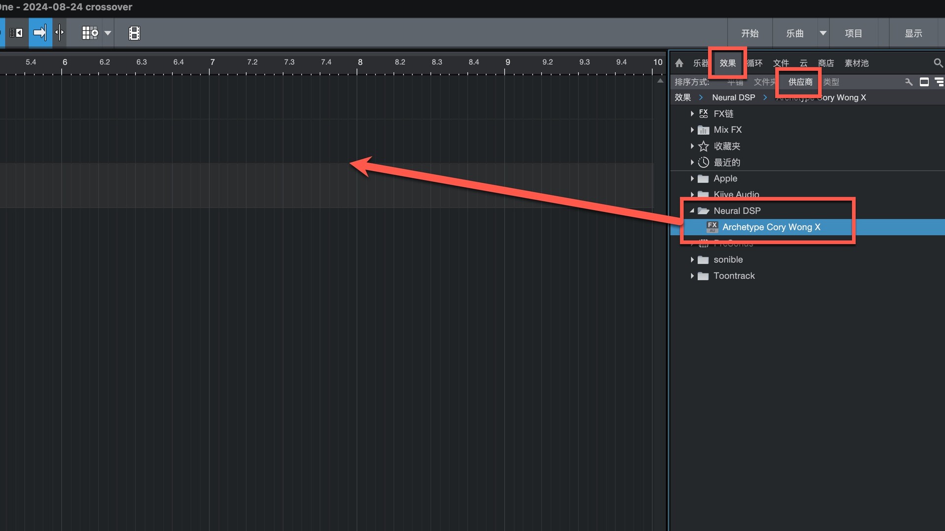 打开studio one 在效果-供应商中即可找到安装好的插件,拖动到左侧空白位置即可