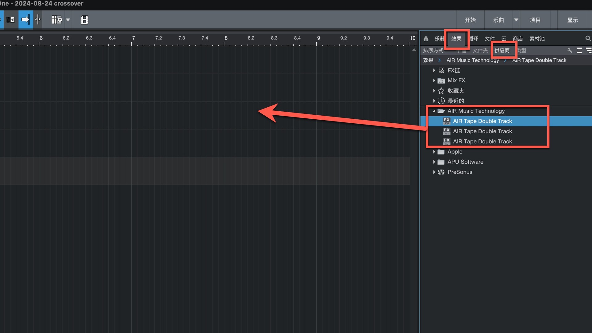 打开Studio One在效果-供应商下即可找到插件,拖动到左侧即可