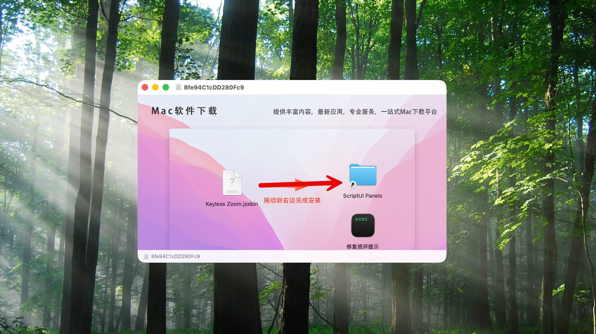 将 Keyless Zoom 拖动到右侧的ScriptUI Panels文件夹中即可,如图