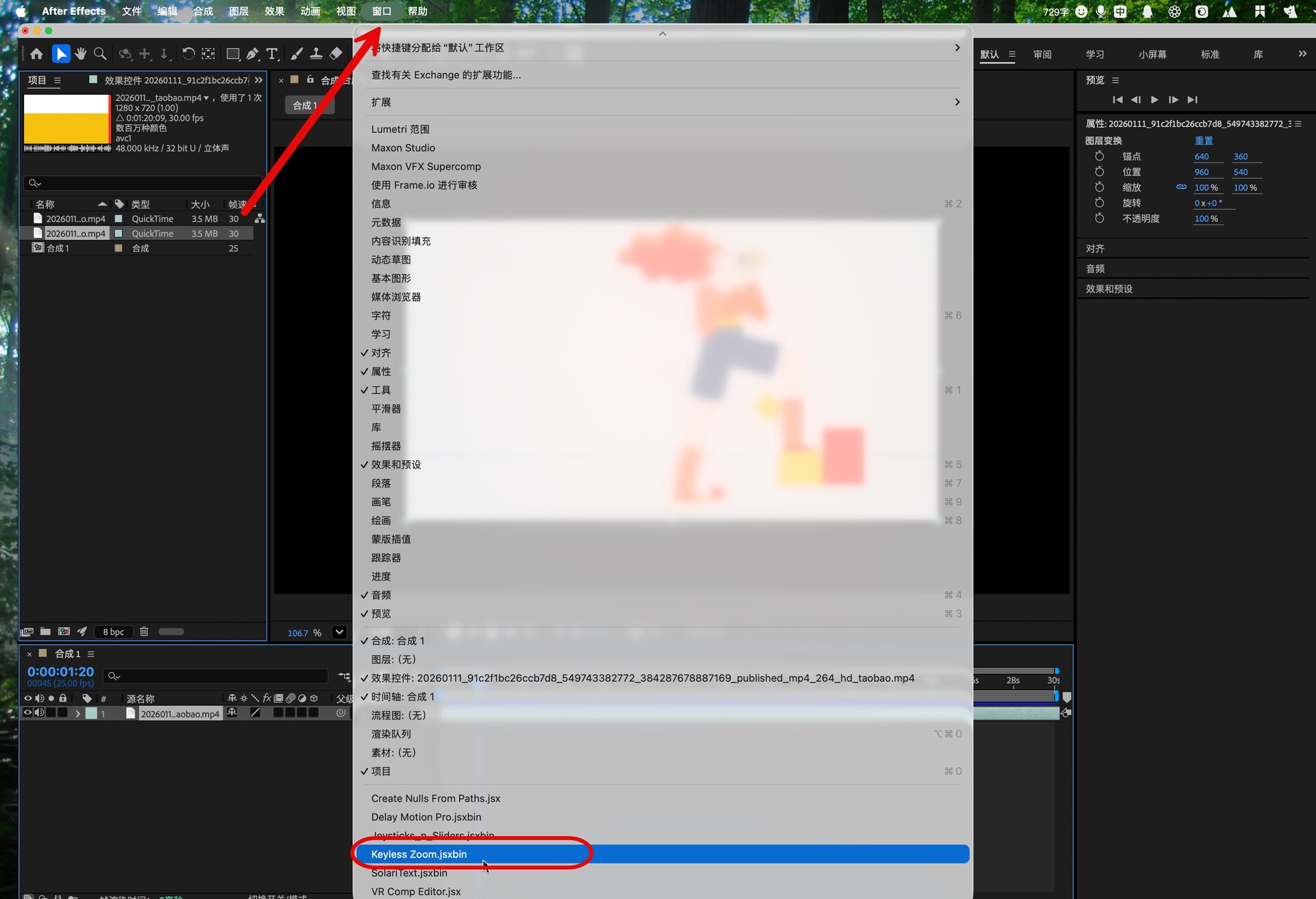 打开AE在窗口-扩展即可找到安装好的插件,如图