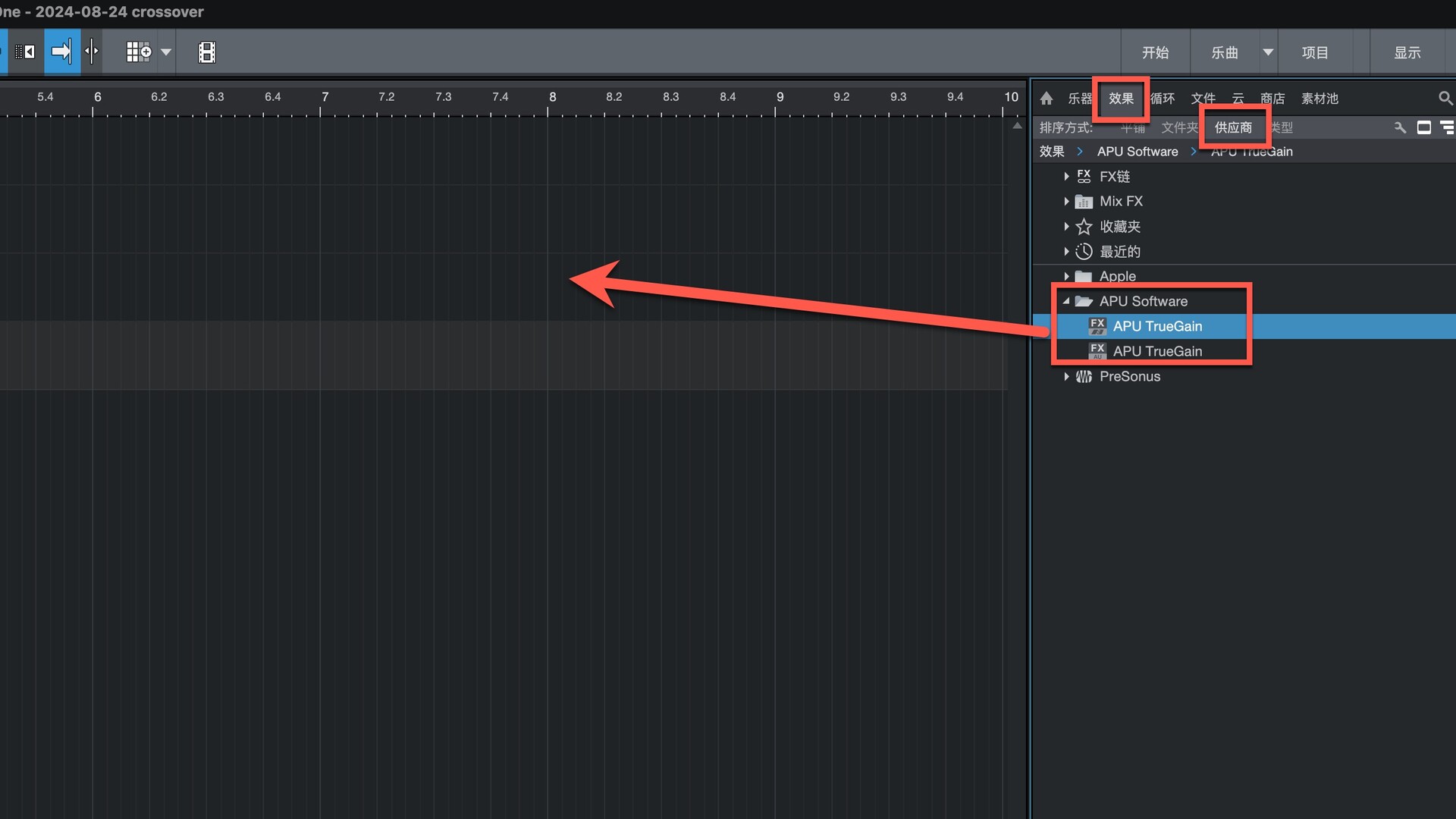 打开Studio One在效果-供应商下即可找到插件,拖动到左侧