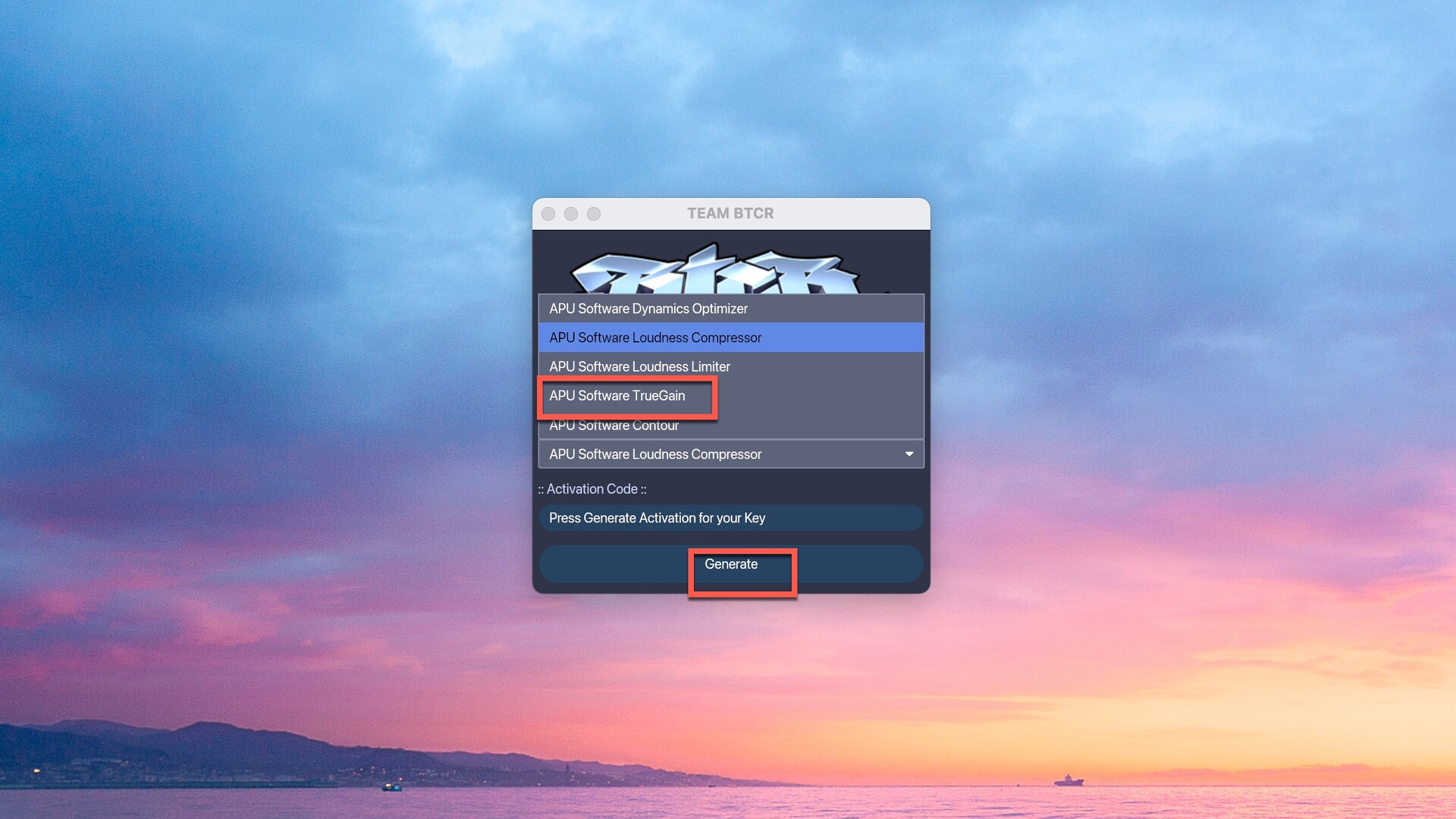 选择需要激活的插件TrueGain,点击generate生成注册码