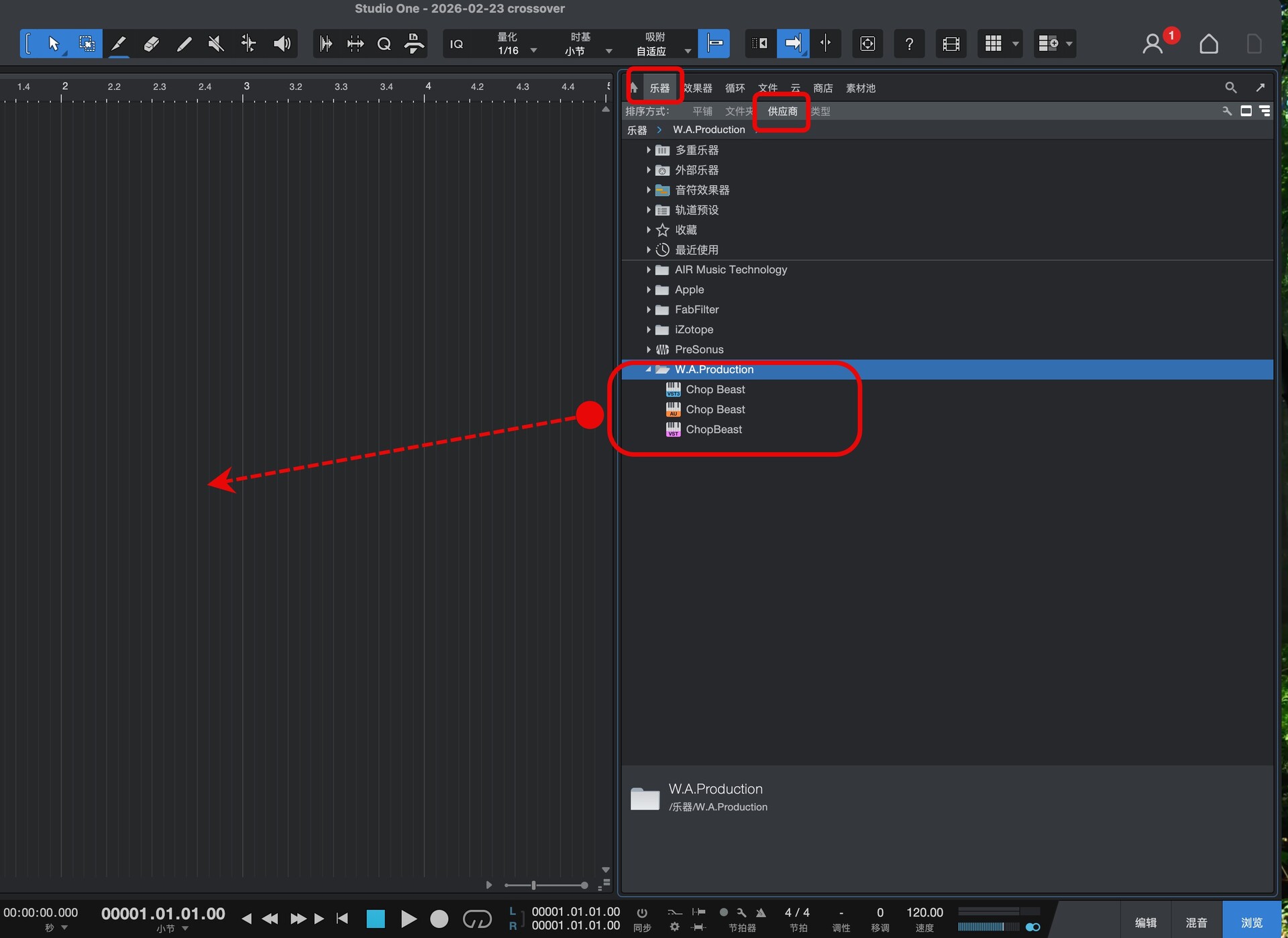 打开studio one,在效果/乐器-供应商处即可找到安装好的插件