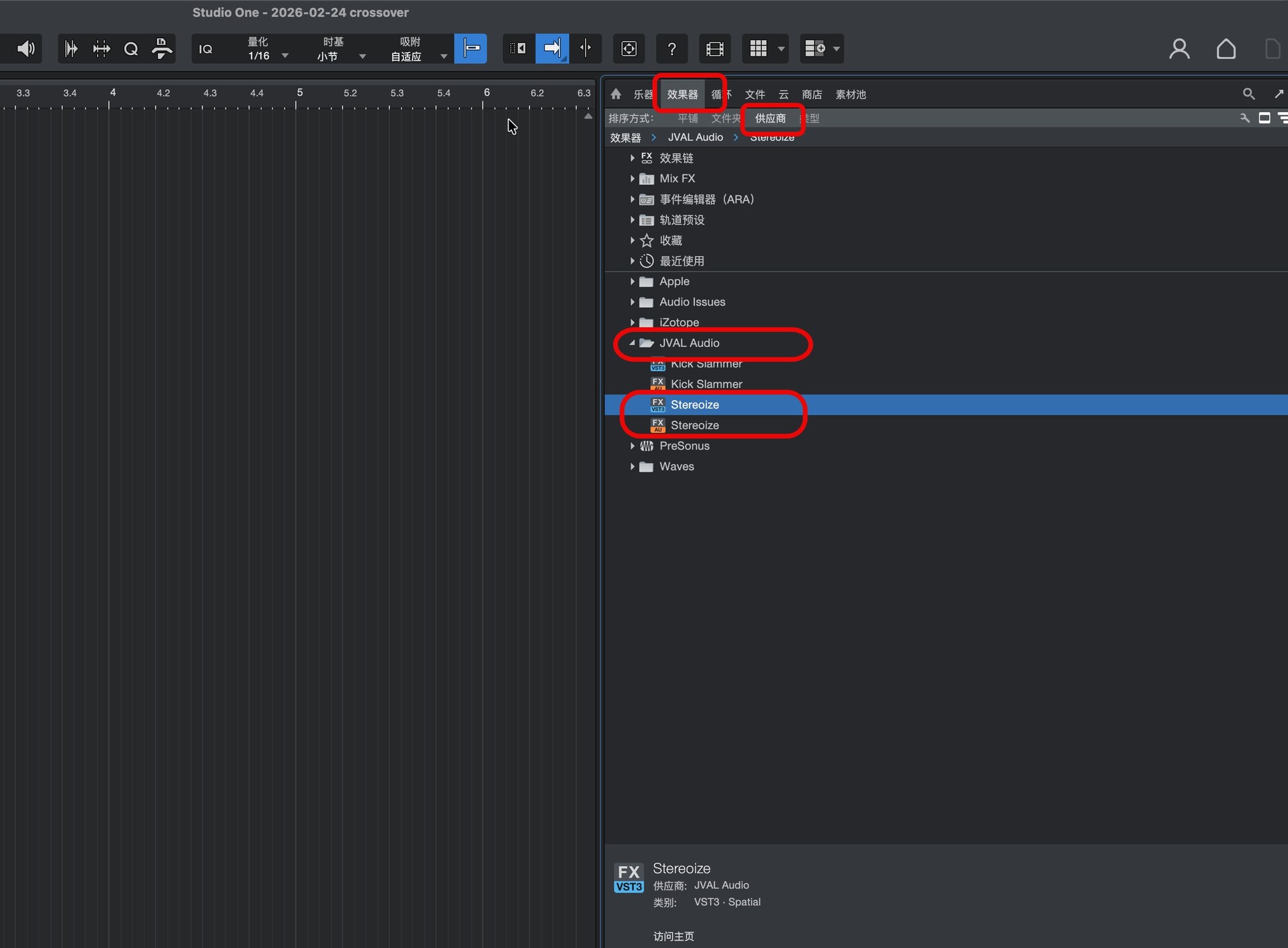 打开studio one,在效果-供应商处即可找到安装好的插件