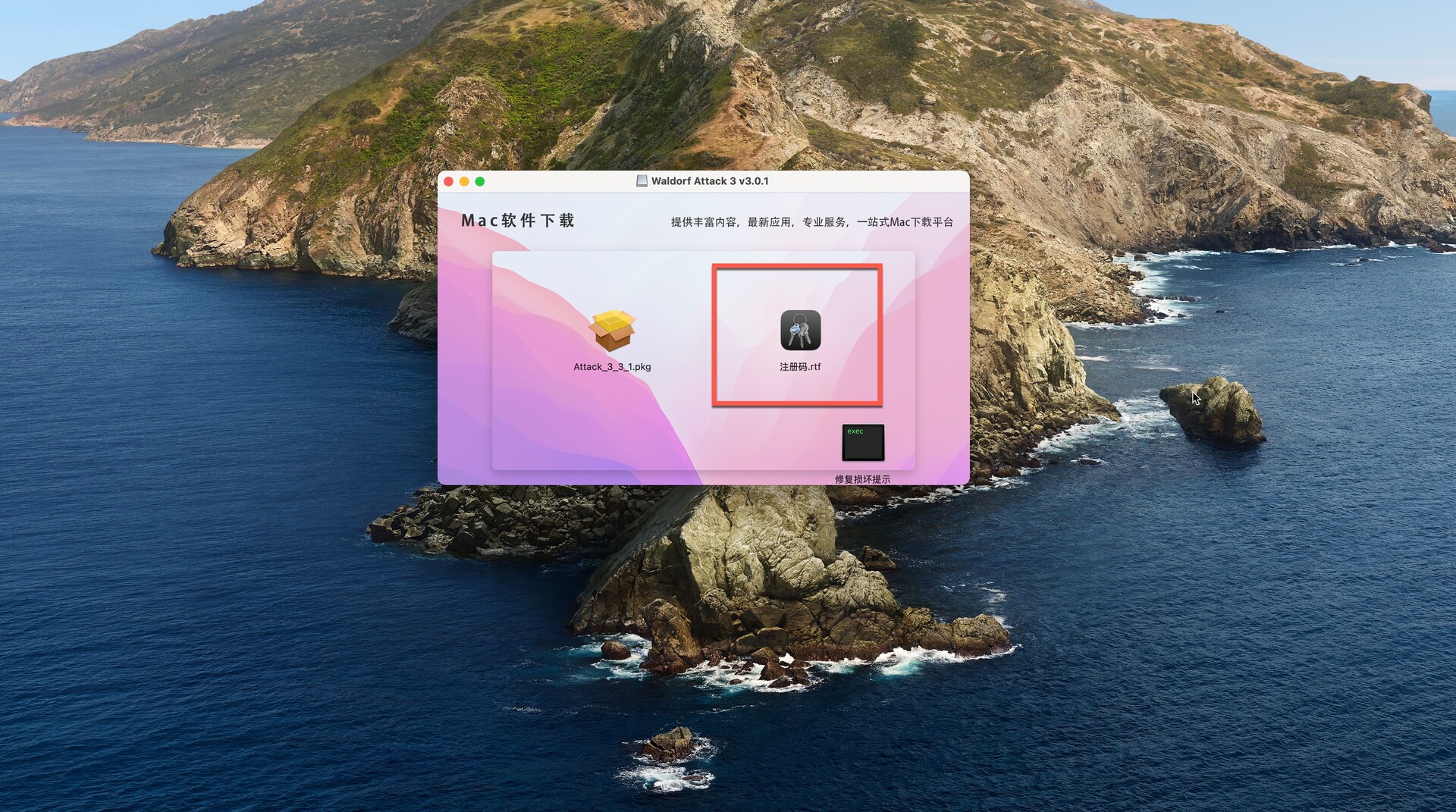 返回安装包,打开注册码,如图: