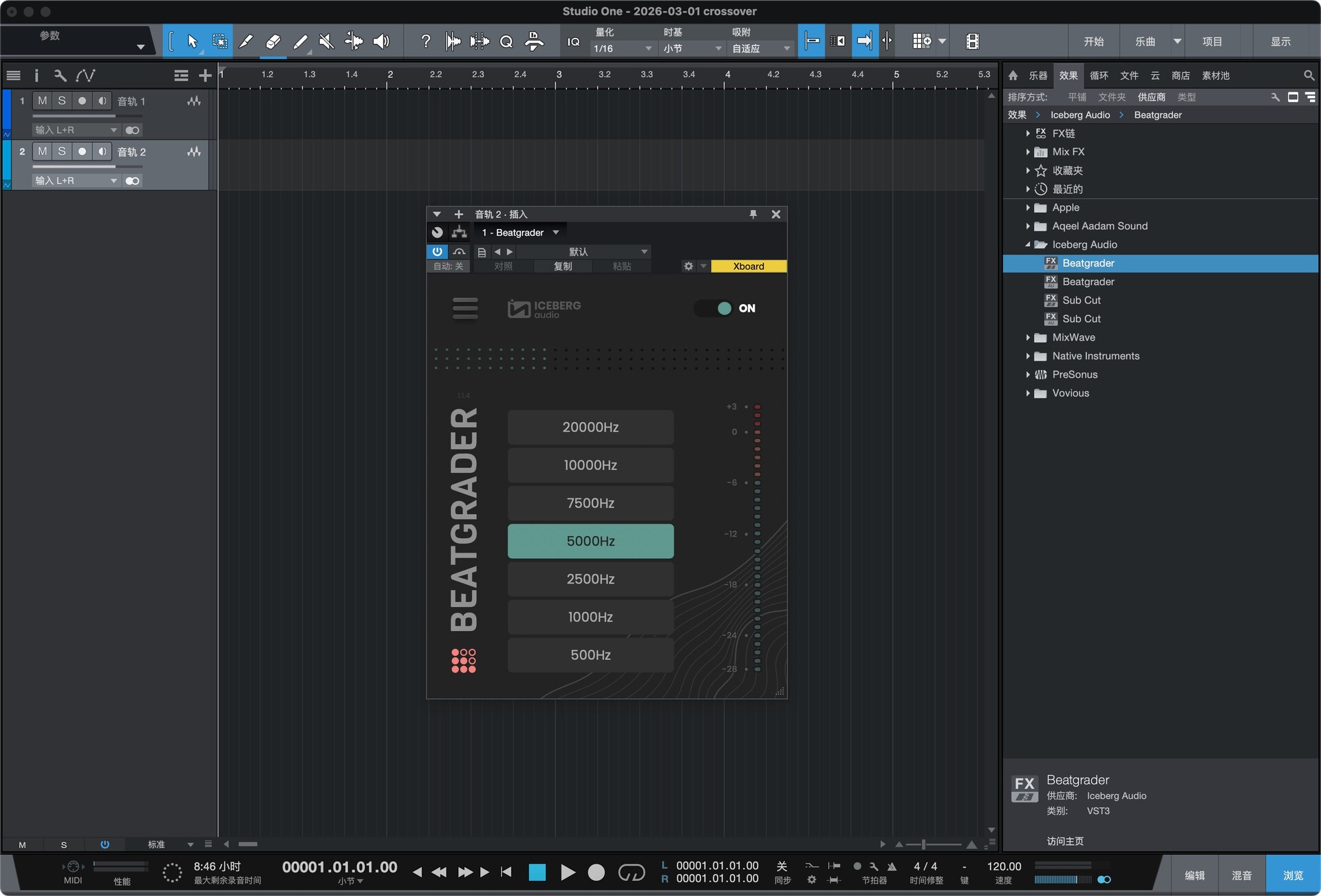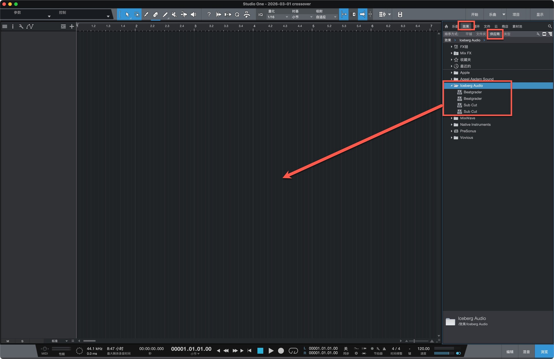 打开Studio One,在效果—供应商中找到安装好的插件,拖到软件空白处即可开始使用