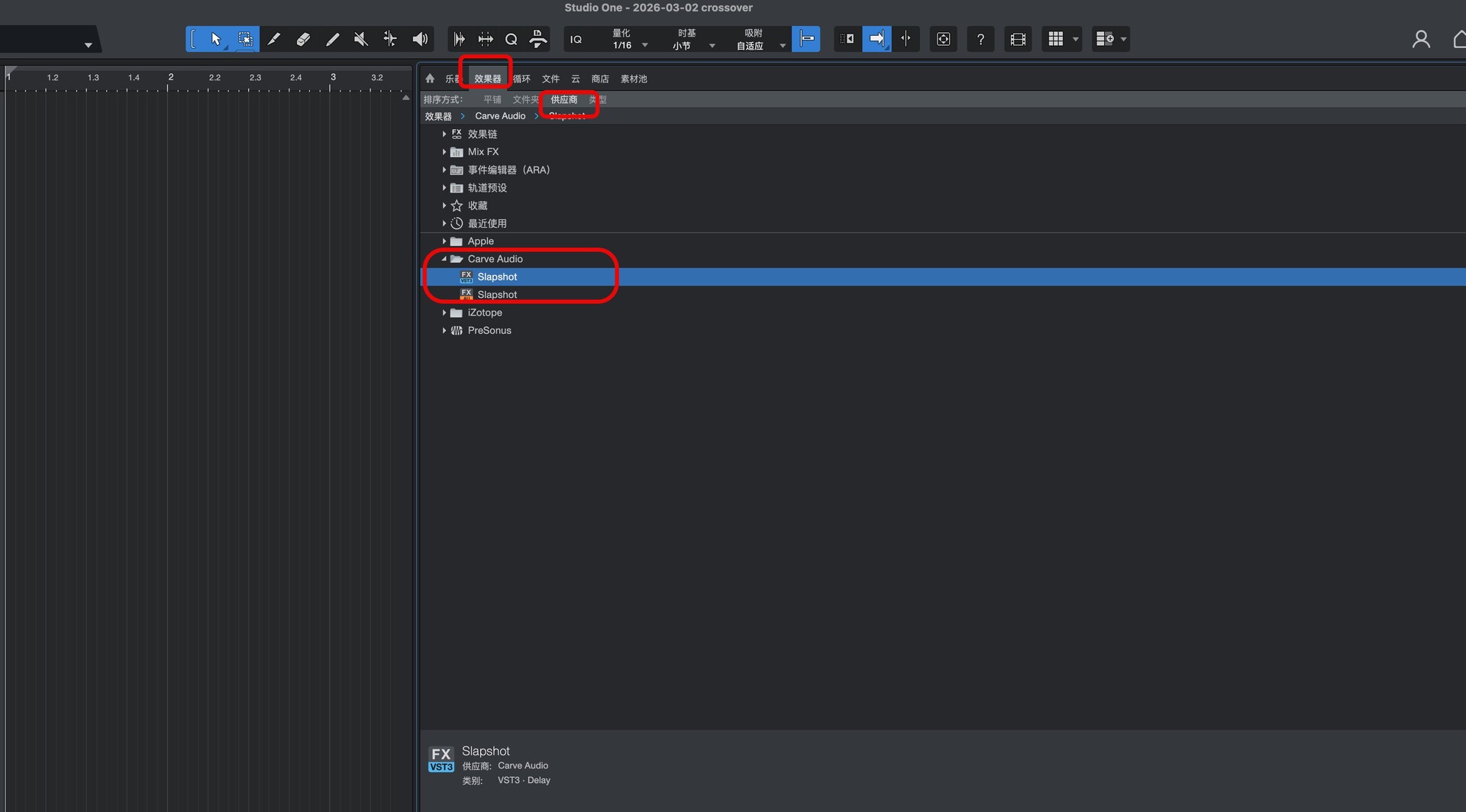 在studio one效果中找到此插件,如图