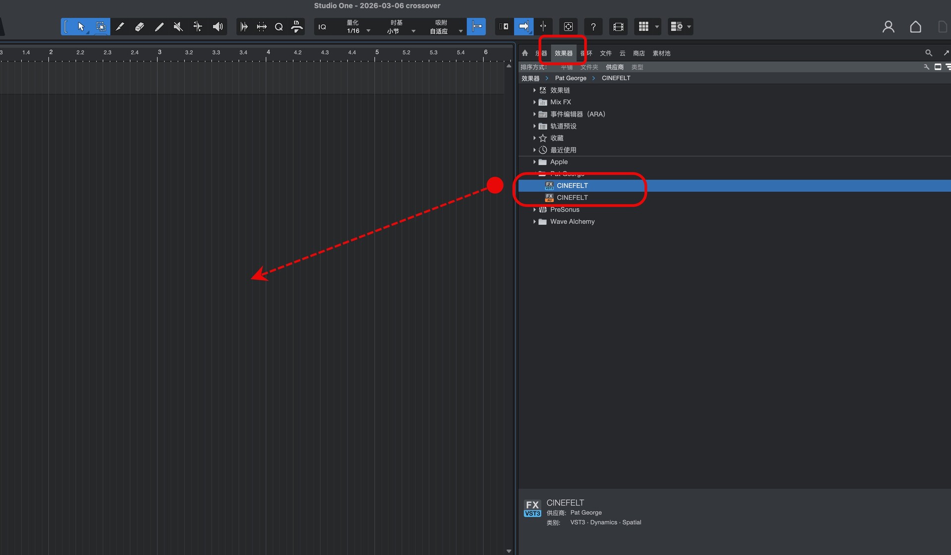 在studio one效果中找到此插件,如图