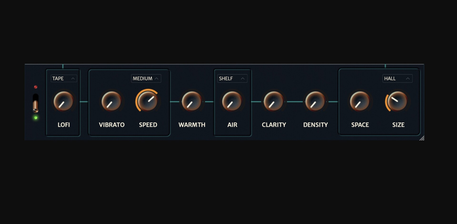 把它放到音轨上,转动主旋钮,你原本“毫无个性”的标准声音就会变成一种亲密的表演,真正打动你和其他人,而无需混音工程师的技能或 5 个插件链。