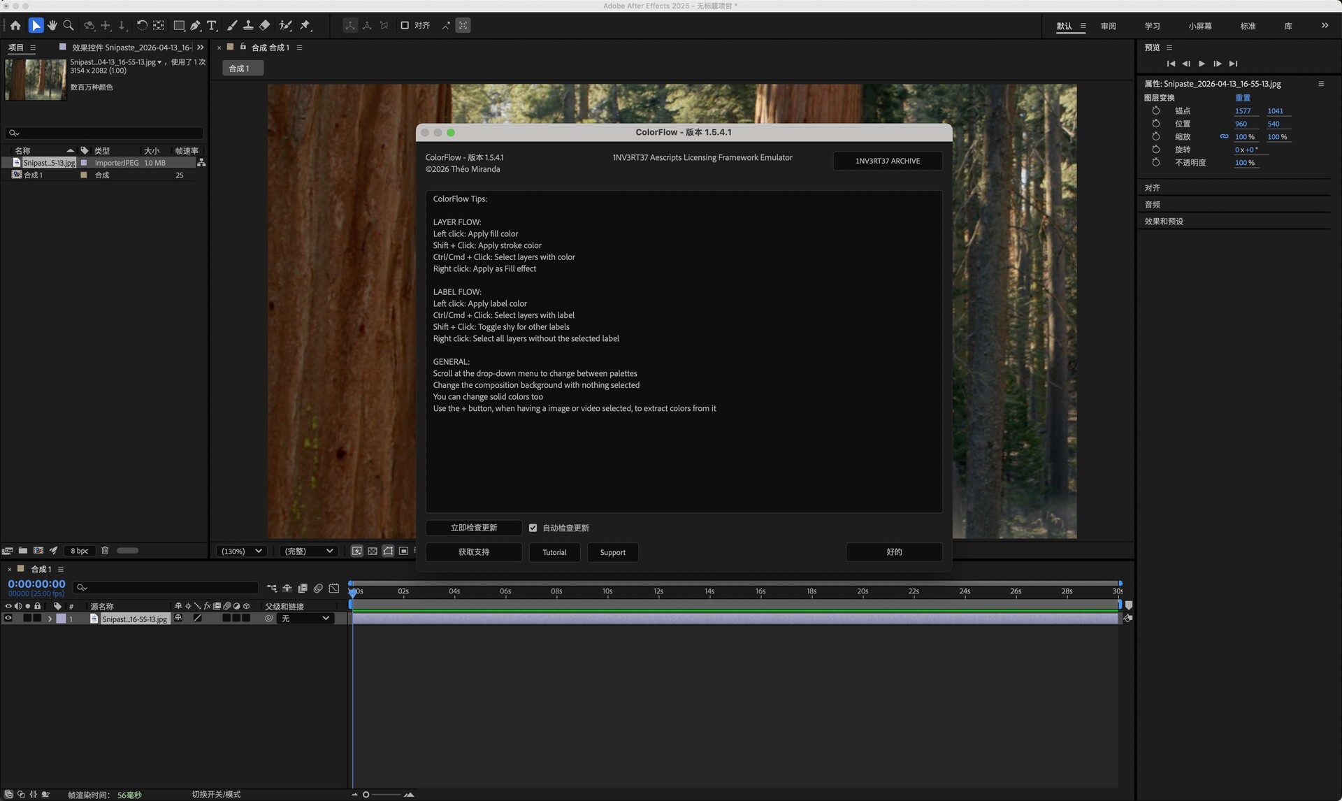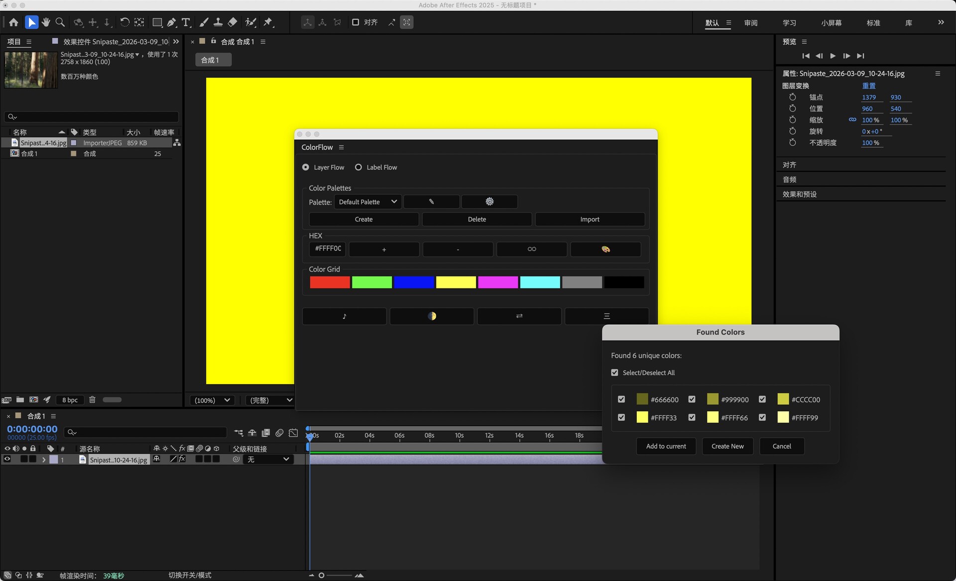 AE脚本-自定义调色板快速应用工具 ColorFlow