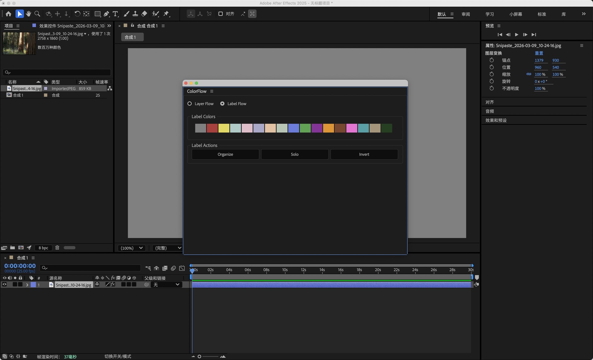 轻松管理 After Effects 中的颜色和标签!使用ColorFlow脚本,您可以创建自定义调色板,快速将颜色应用于任何图层类型,高效地组织标签,并使用直观的快捷方式简化您的工作流程。