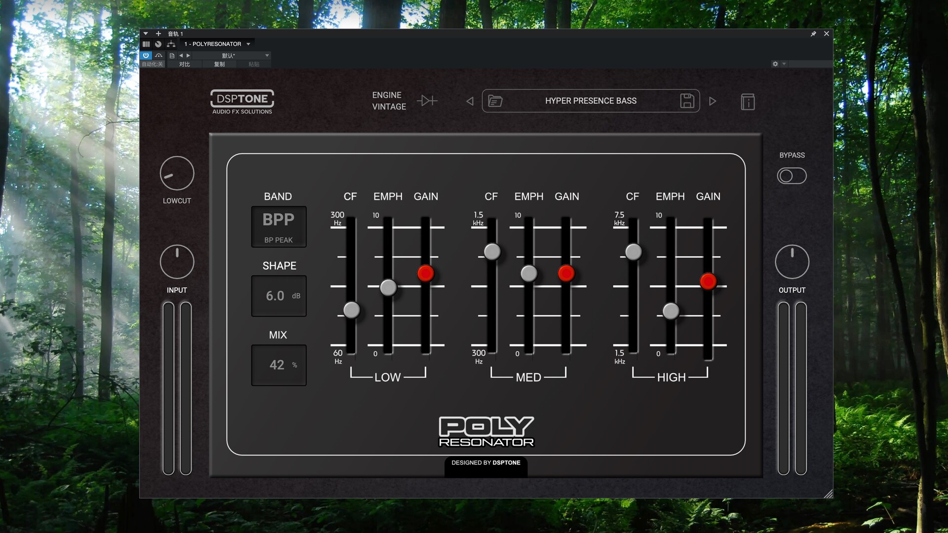- 三个重叠的频段可以让你塑造出传统滤波器无法实现的类似人声的音调峰值和有机谐波结构。