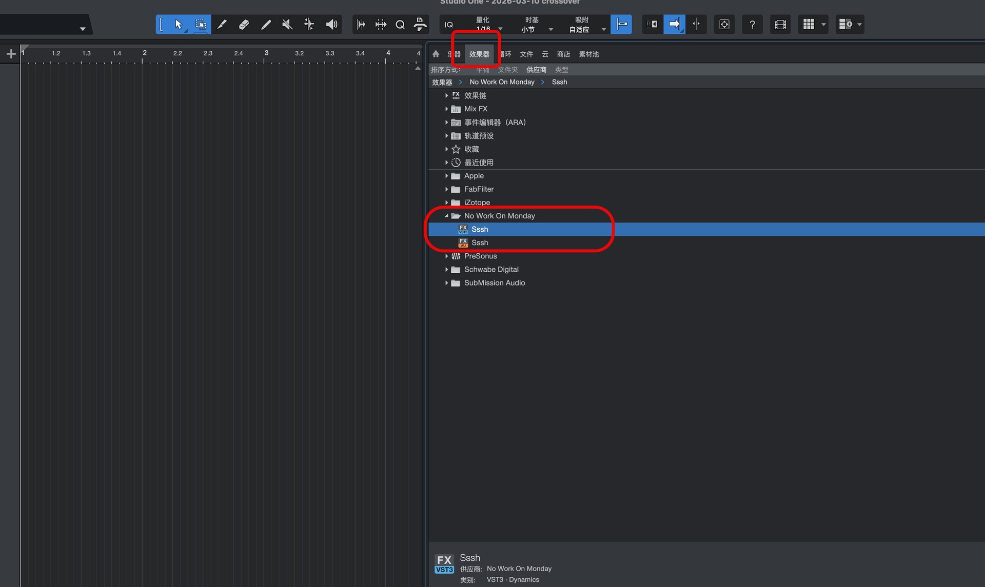打开studio one 在效果-供应商中即可找到安装好的插件,如图