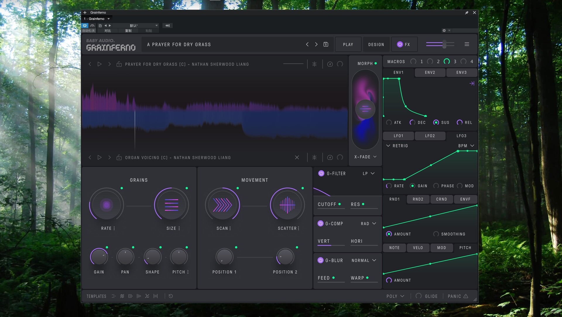 Grainferno 是一款先进的颗粒合成乐器,它采用了一种全新的方式,利用现有音频合成声音。其新一代的颗粒引擎会将采样分解成微小的碎片,并将它们重建为全新的音色。