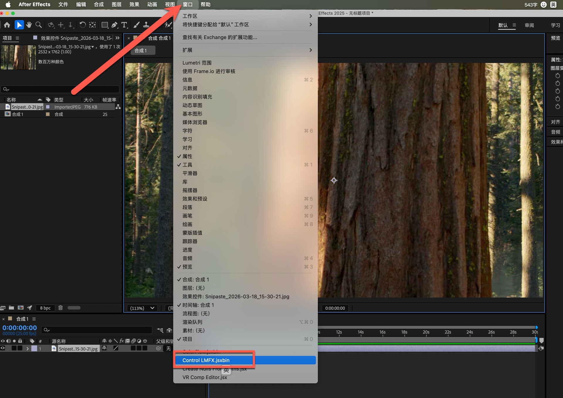 打开ae,在窗口下可以找到此插件,如图: