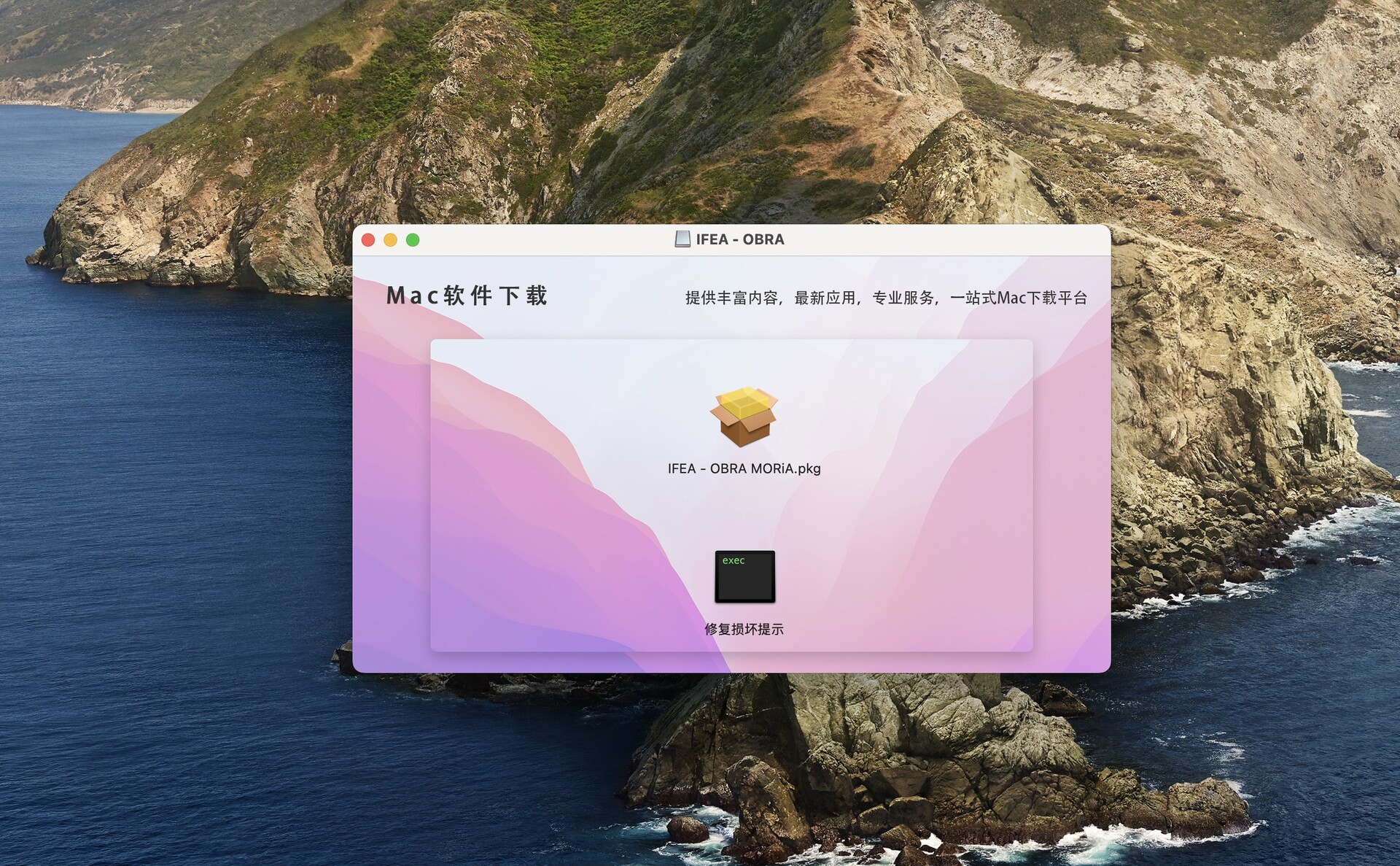 需要配合音频软件使用,如studio one安装包下载完成后打开,根据提示默认安装IFEA - OBRA MORiA.pkg即可