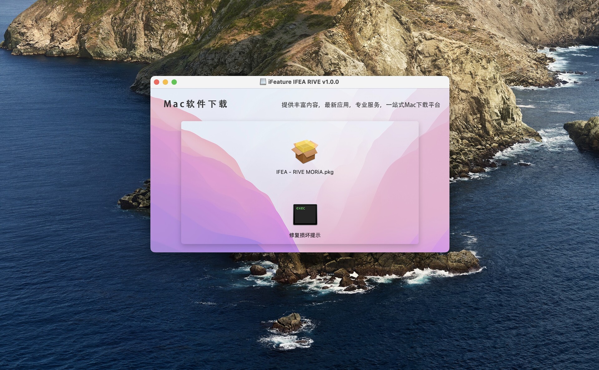 需要配合音频软件使用,如studio one安装包下载完成后打开,根据提示默认安装IFEA - RIVE MORiA.pkg即可