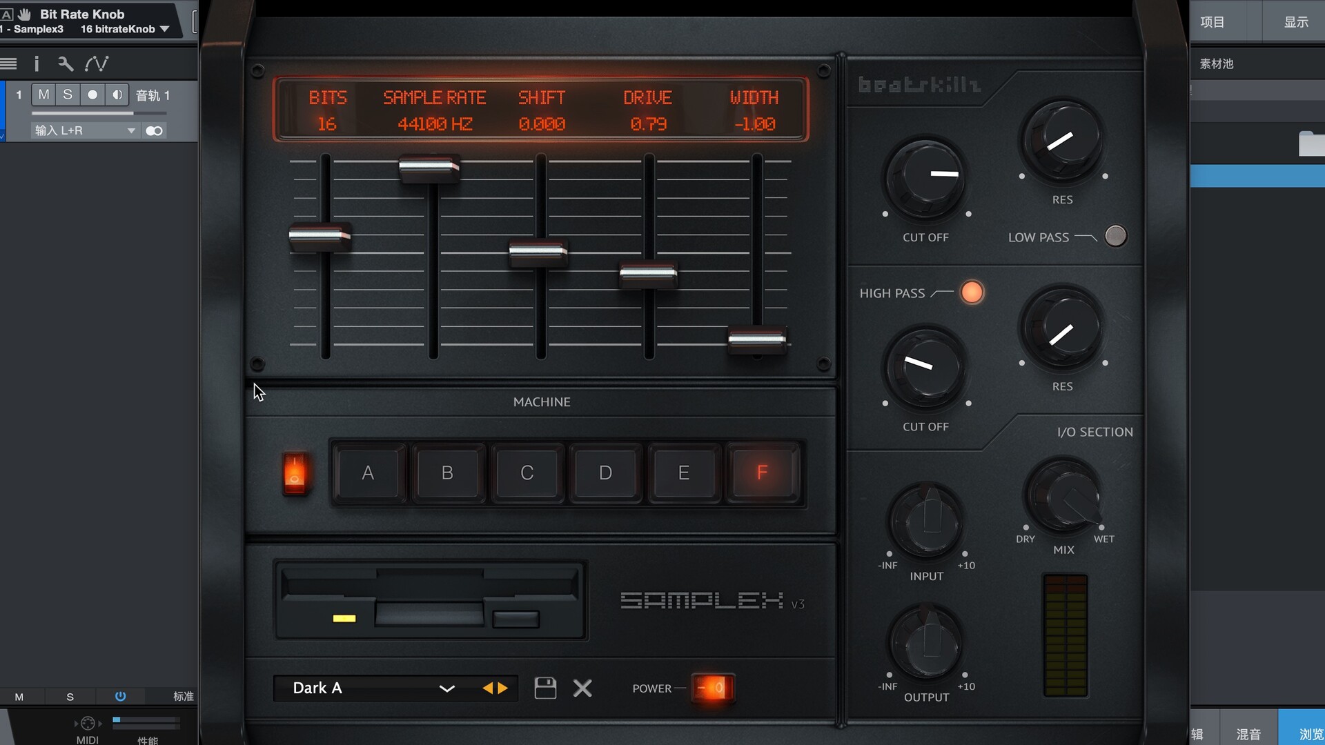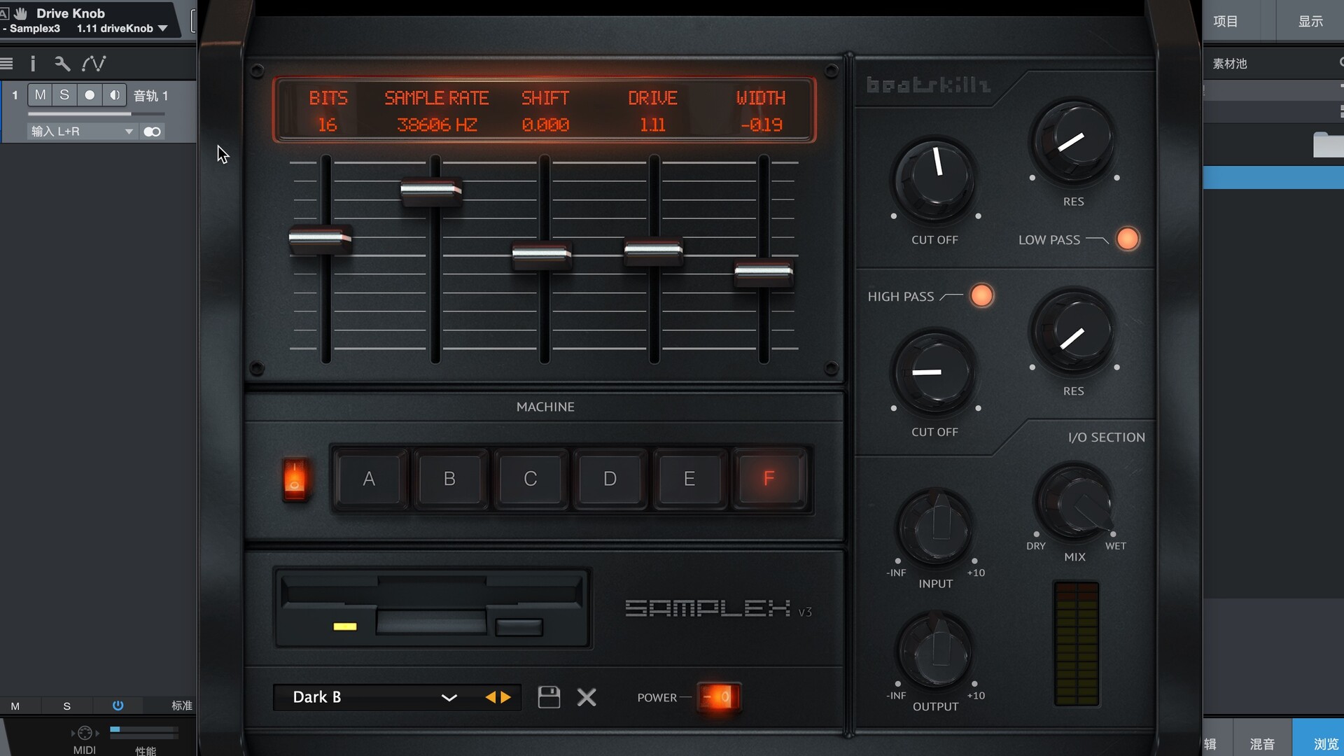 标准可变采样率、比特率和混叠控制 (Shift) 也存在。我们还添加了 IR 机器开/关功能、I/O 部分的 POP UP 值显示、过滤器部分以及 2 个新的采样器模型。