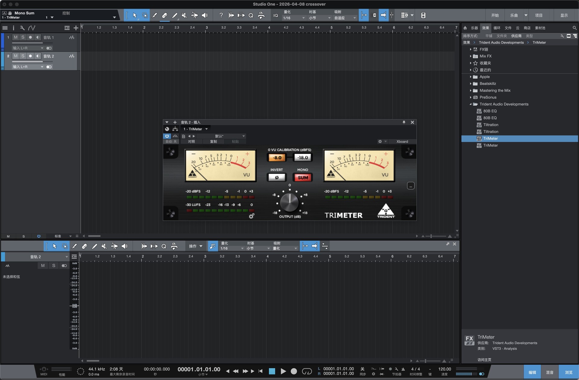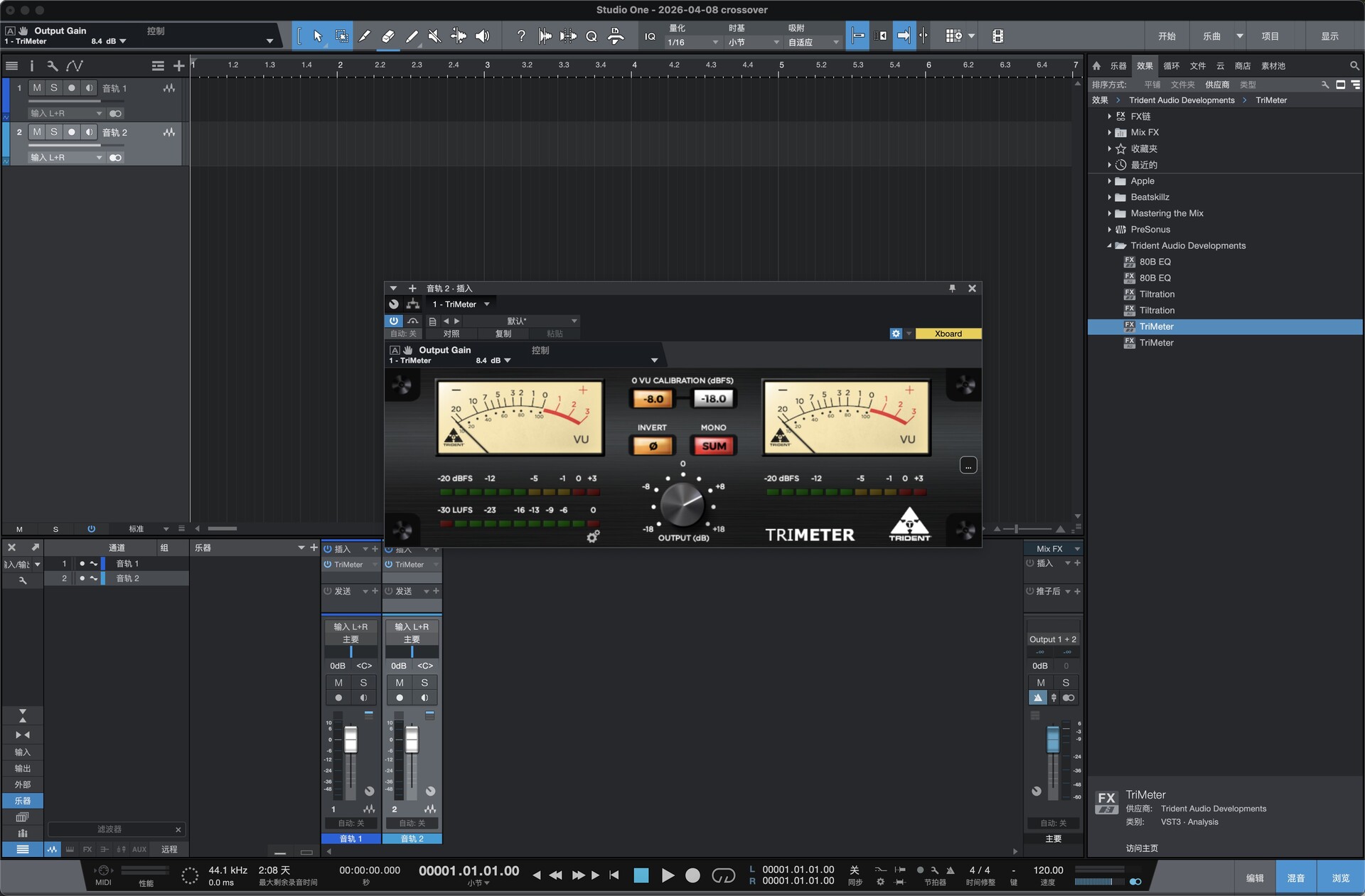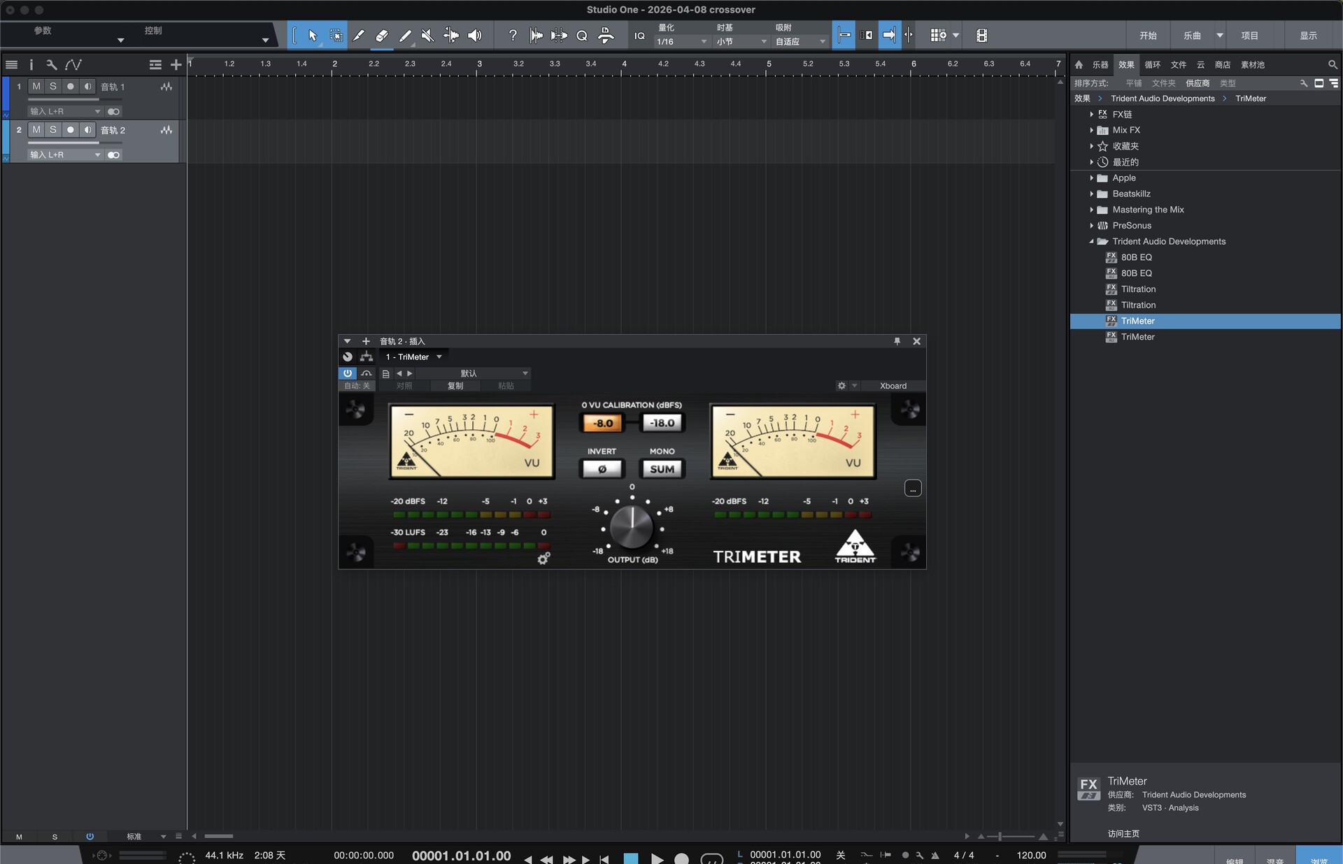 TriMeter 是英国传奇音频品牌 Trident Audio 推出的三合一高精度电平监听表桥插件,精准复刻 Trident 经典模拟调音台的 VU/PPM 表头特性,集成专业 LUFS 响度计量、增益调节与相位检查,为混音、母带、流媒体制作提供完整电平参考体系,确保信号健康、响度合规、音色自然。