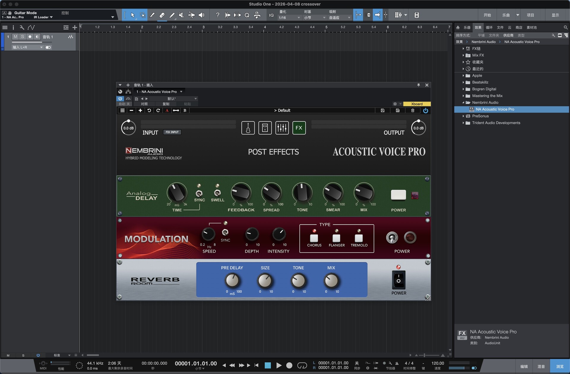 Nembrini Audio Acoustic Voice Pro 是一款专为原声吉他设计的一体化音色塑造插件,通过高精度箱体、麦克风与前级建模,将电箱琴(Piezo)的干涩拾音信号直接转换为录音棚级的自然、饱满、通透原声,一站式完成吉他模拟、拾音、动态、均衡与空间处理,是原声吉他录音、直播、演出的 “移动录音室” 解决方案。