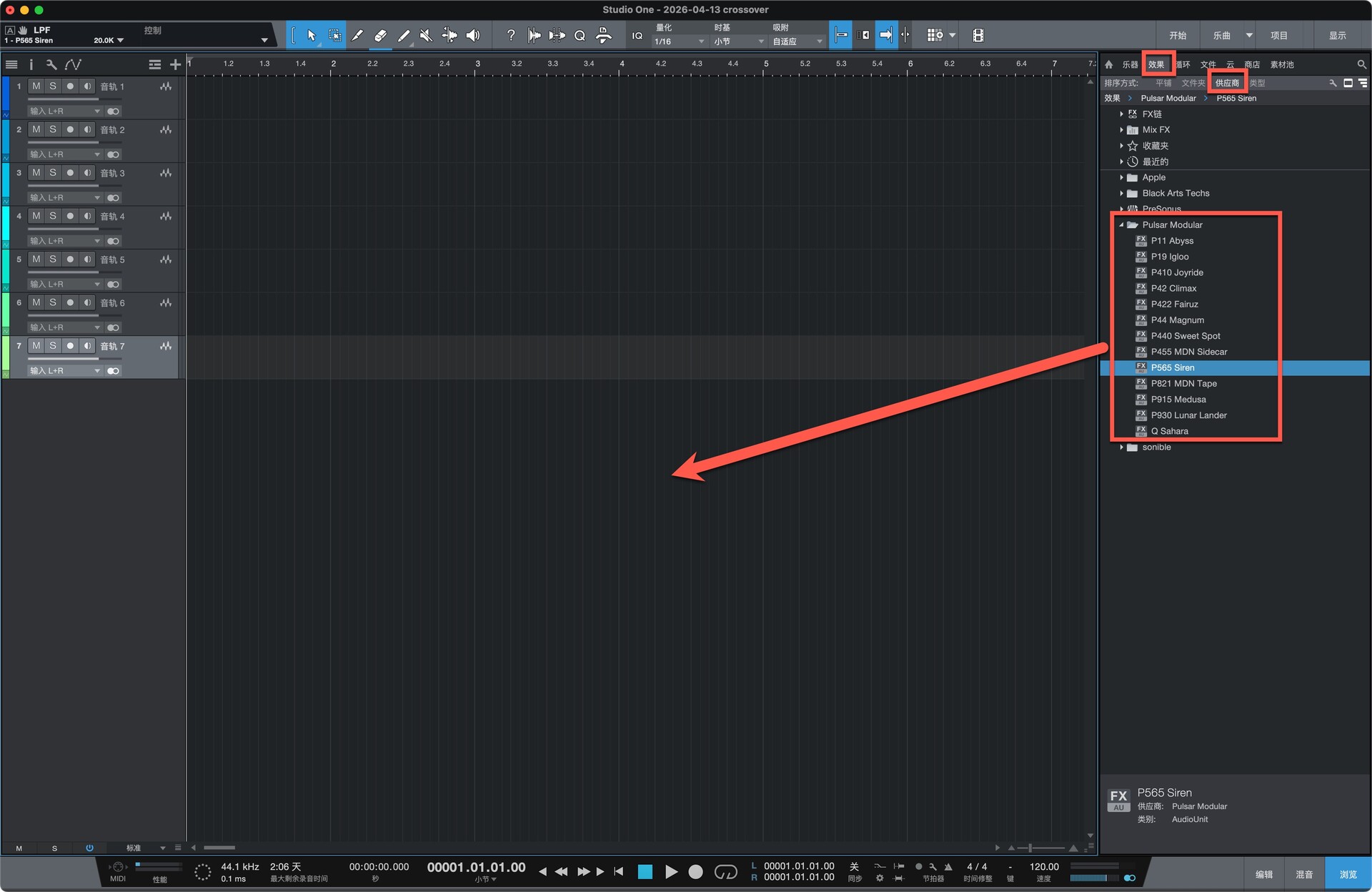 打开studio one,在效果-供应商中即可找到安装好的插件,将插件拖动到左侧空白处