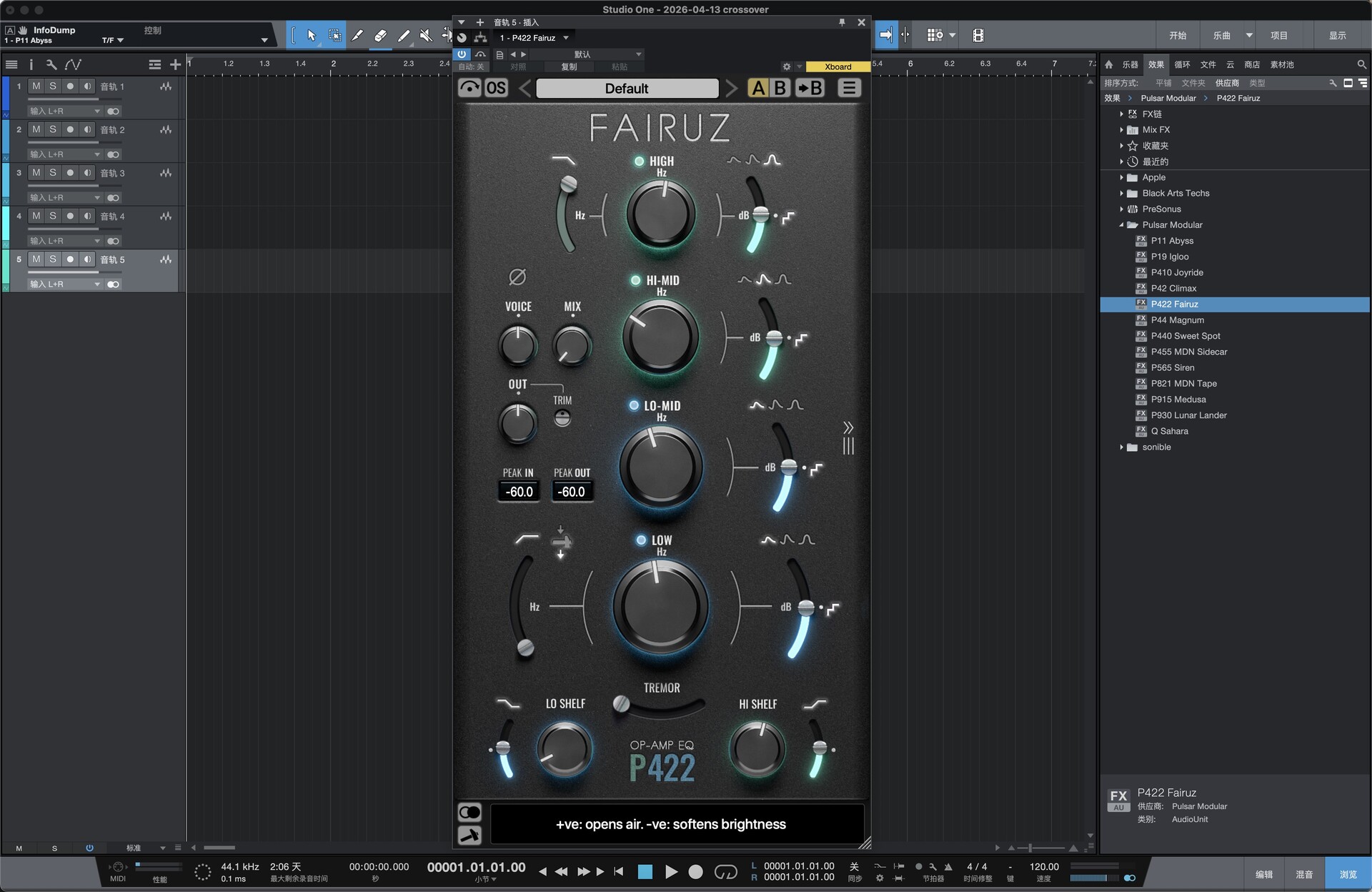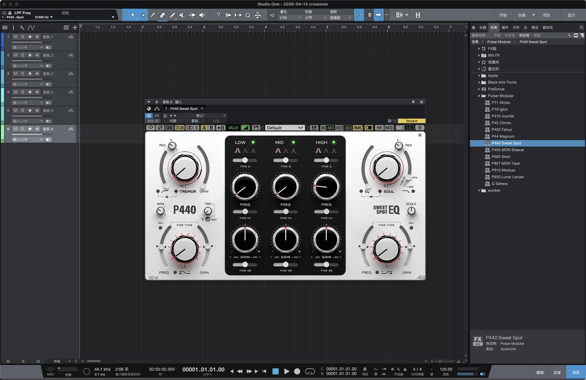测试环境:macOS14.2 studio one 6