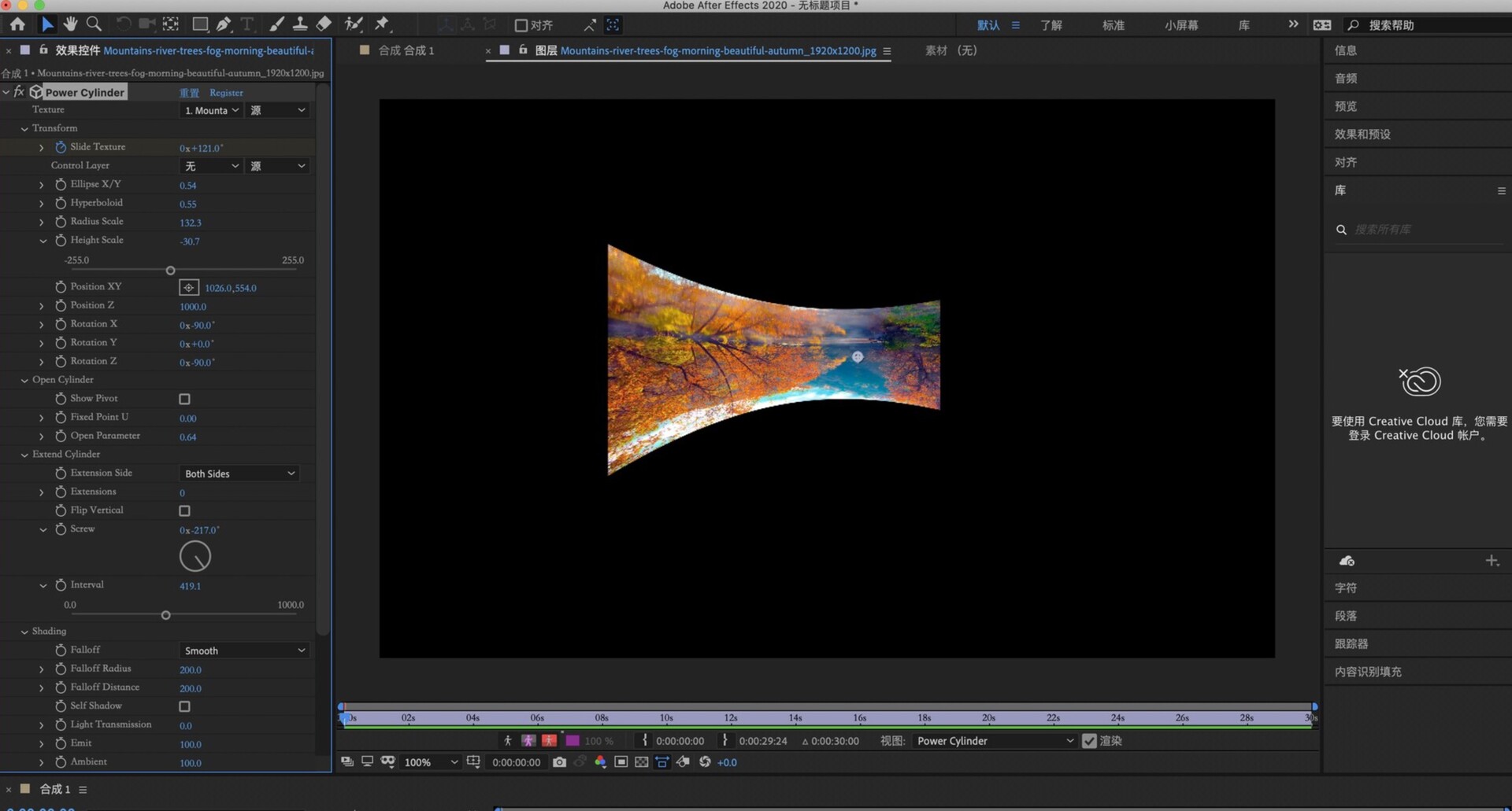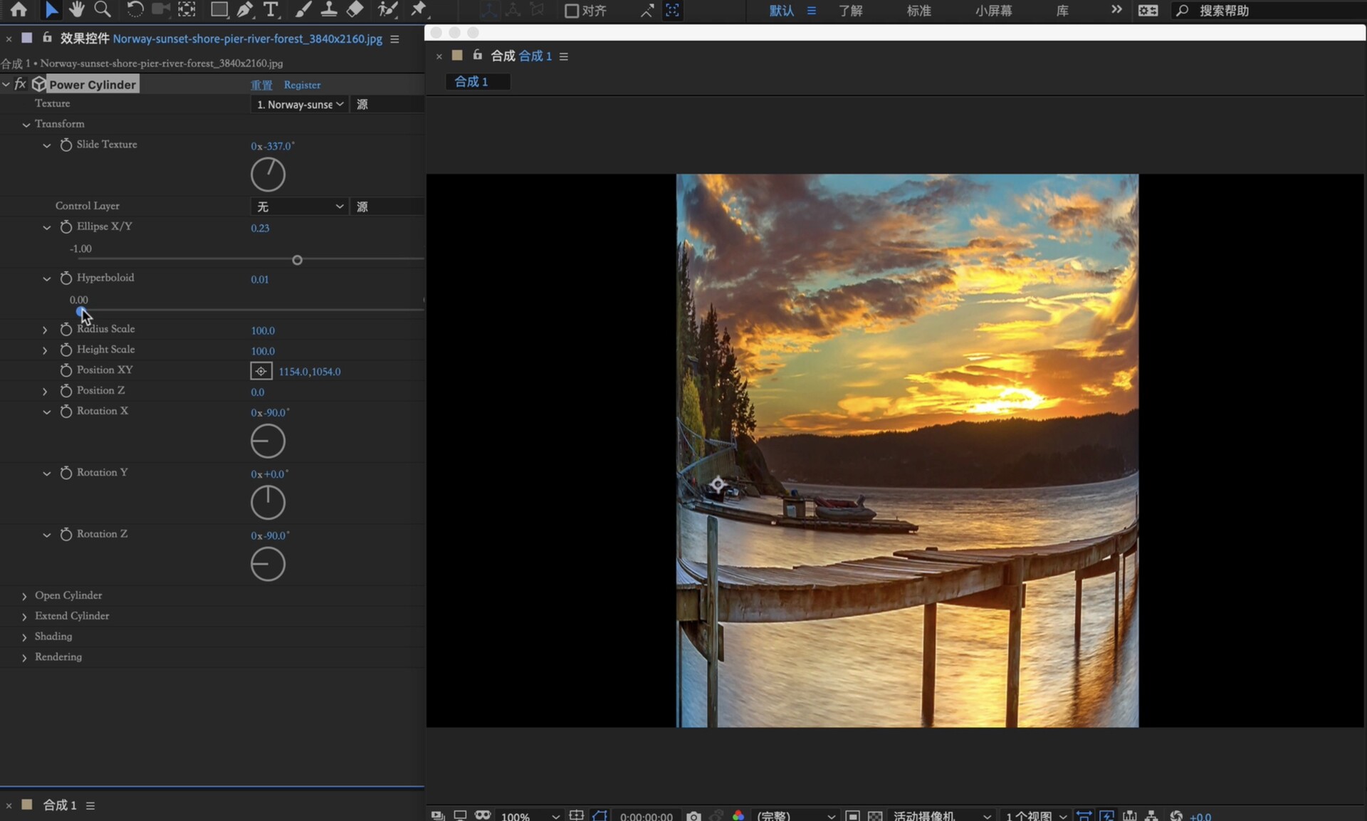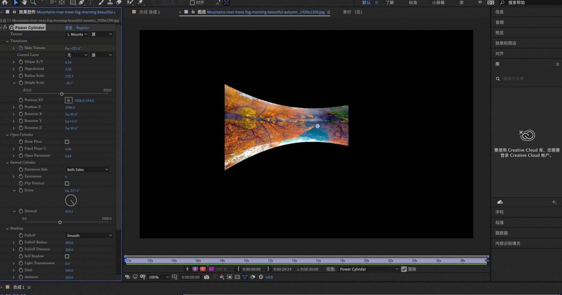 然后我们打开AE在效果里就可以找到Power Cylinder插件。