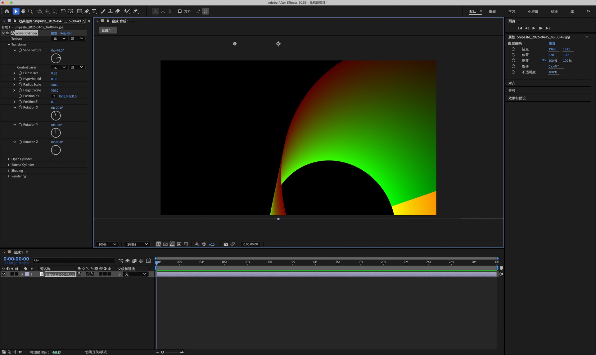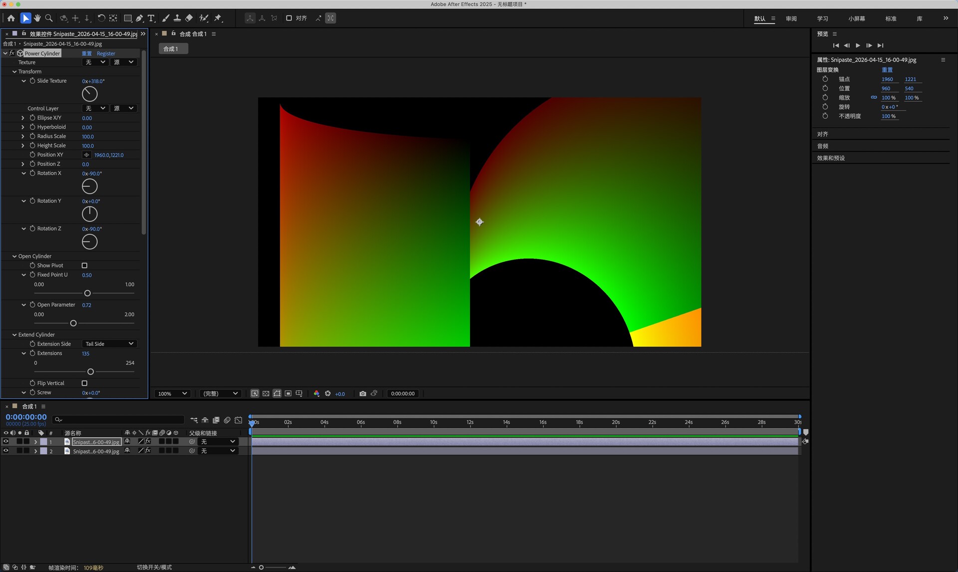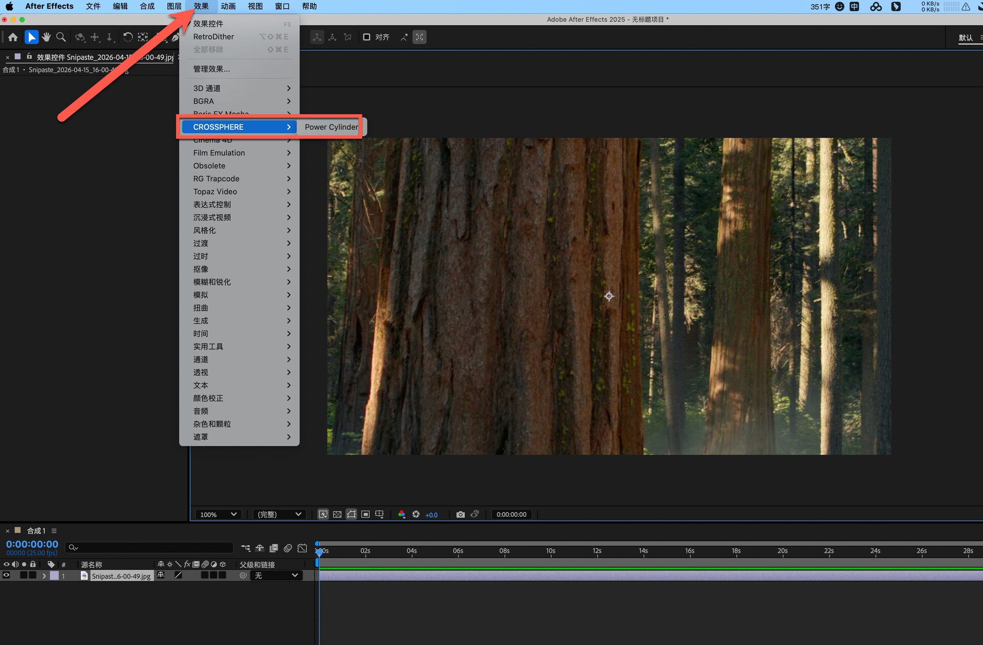 然后我们打开AE在效果里就可以找到Power Cylinder插件。