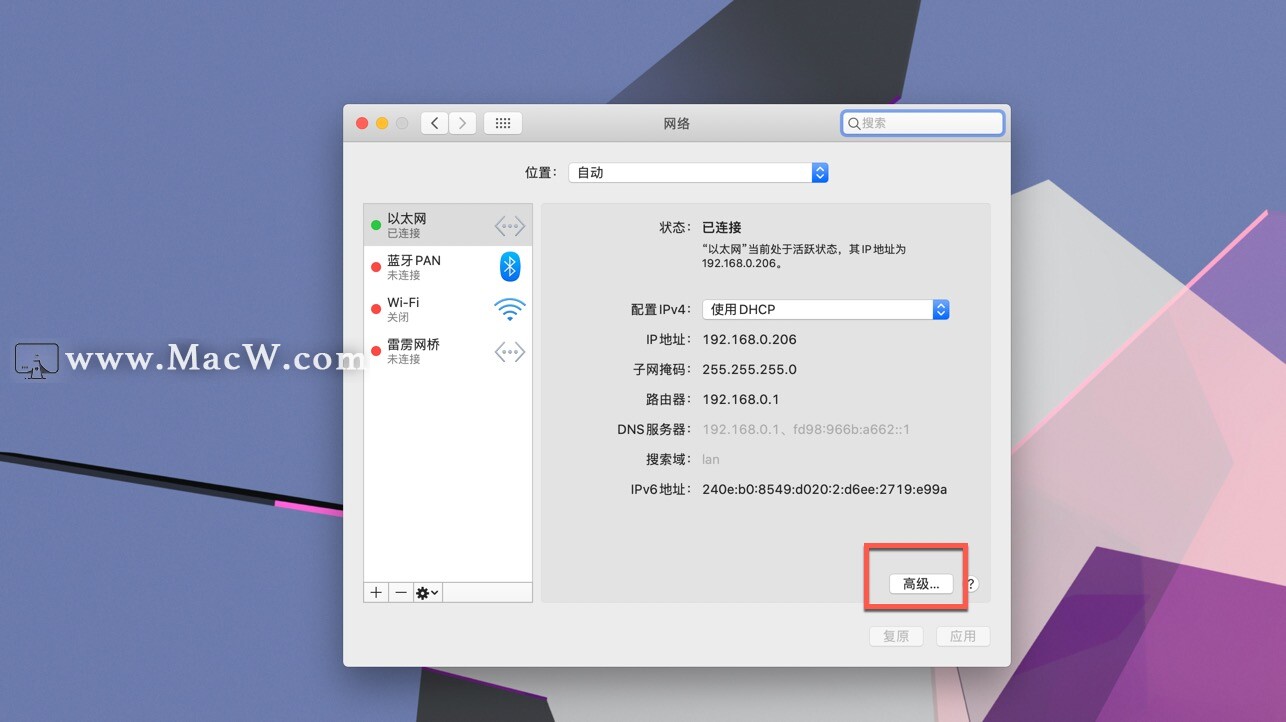 打开系统中的偏好设置,打开网络