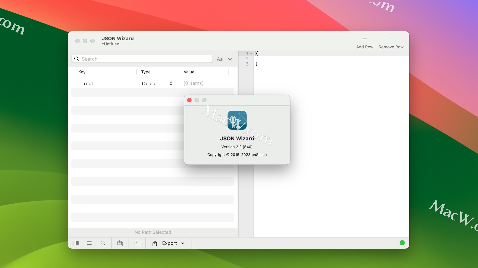 JSON Wizard是查看和编辑你的JSON最简单的方法,是Mac端的终极JSON工具。你只是想查看和编辑你的JSON文件?你想能够导入XML / YAML / PLIST / CSV文件吗?也许你想能够出口到所有这些格式?轻松的视觉编辑?或直接与源代码和生活语法检查?JSON Wizard将会是您的完美工具。