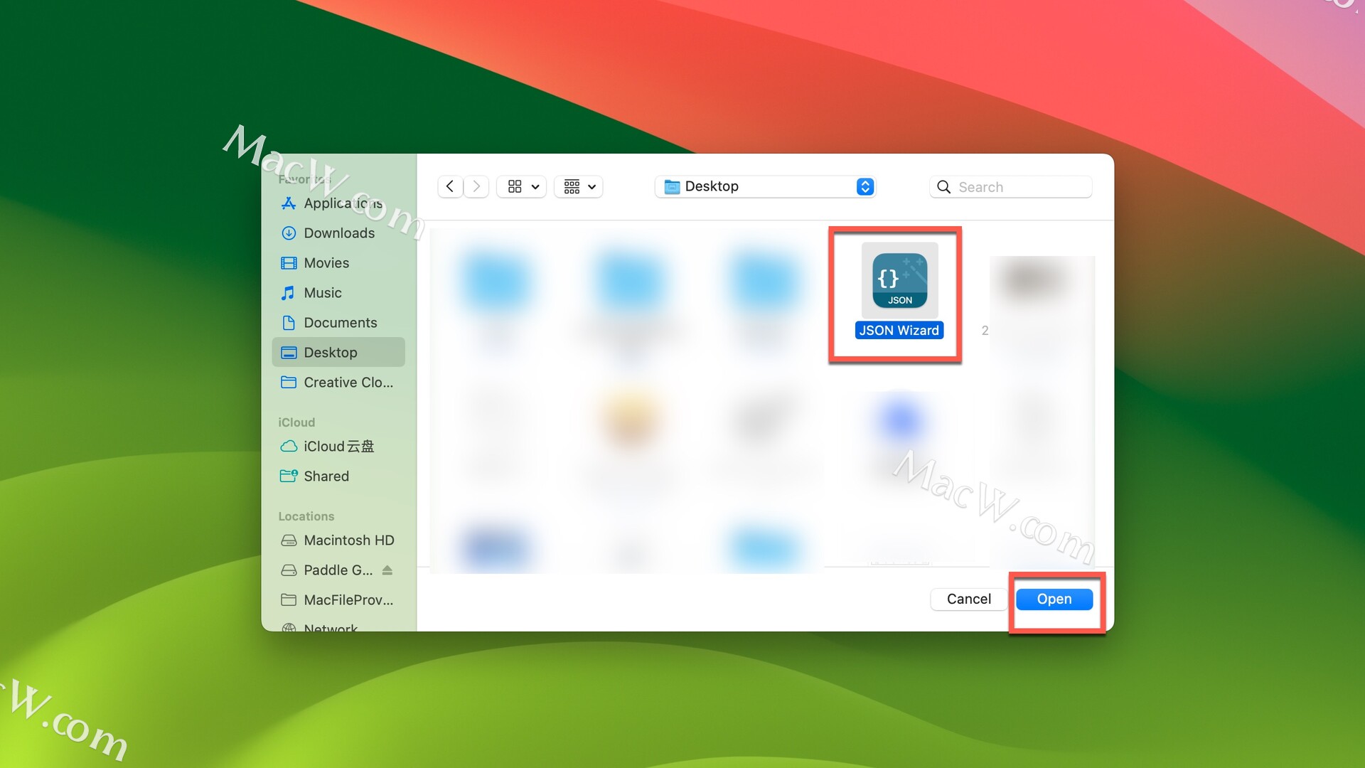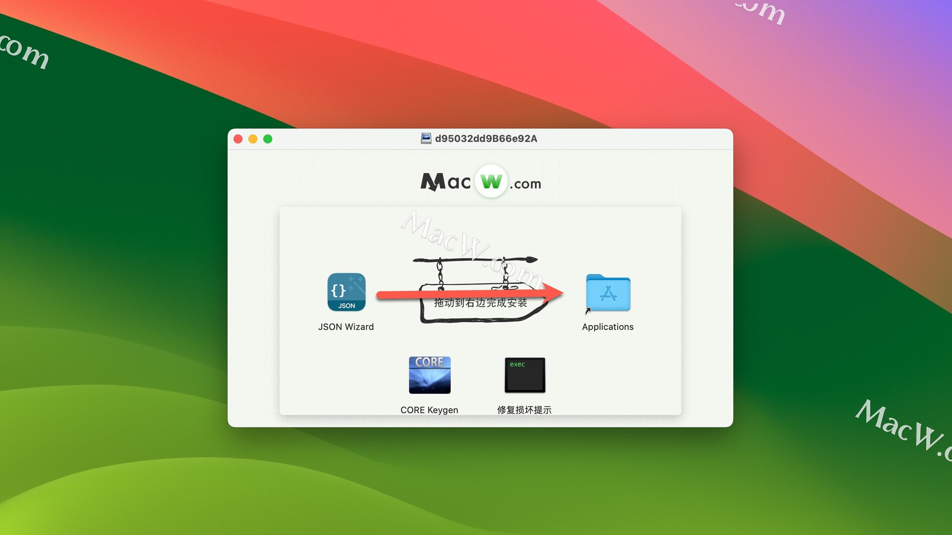 打开下载后的安装包,拖动左侧的JSON Wizard到右侧应用程序中