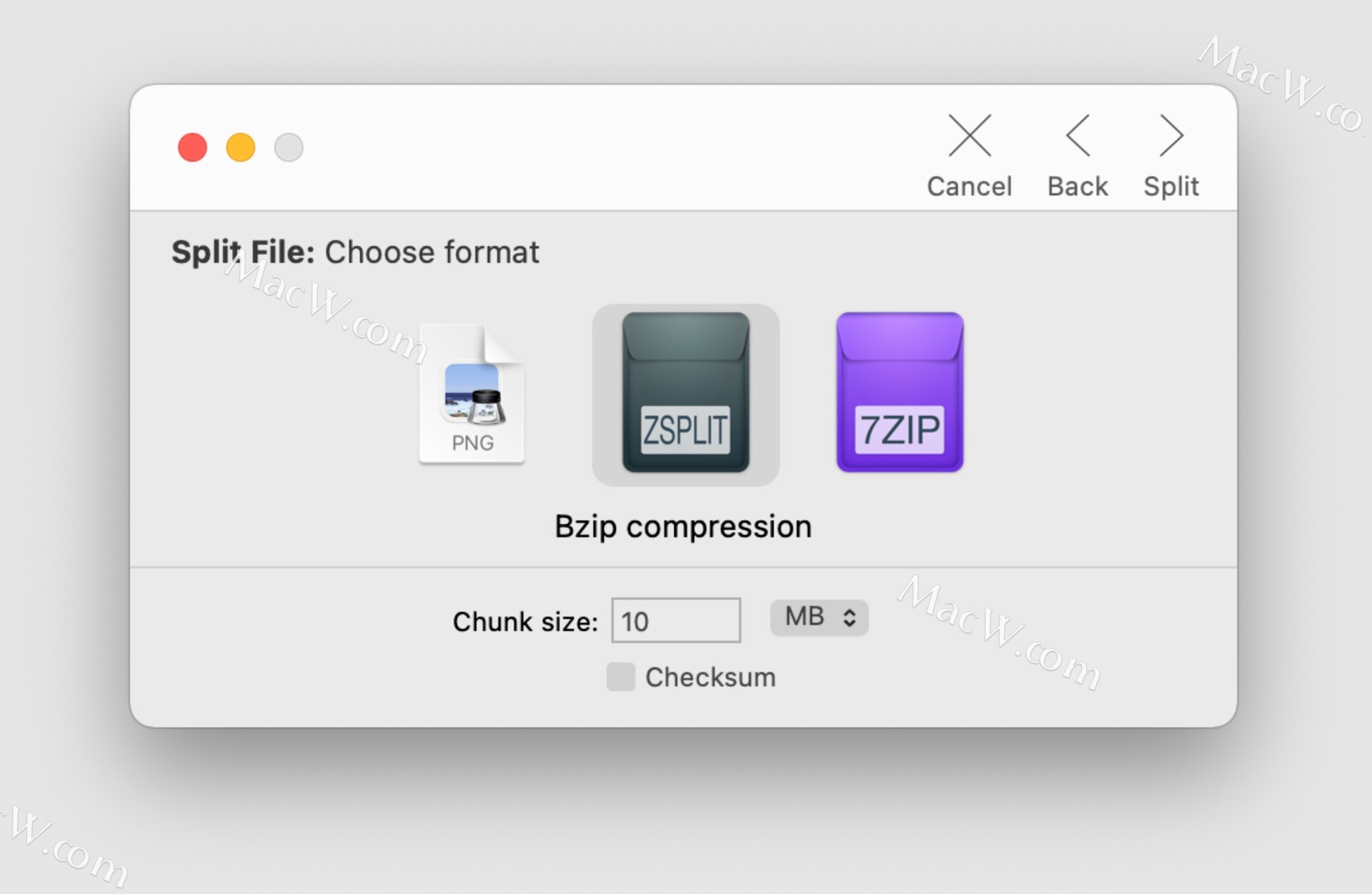 可以选择压缩分割文件以挤出一些额外的空间,或 对它们进行校验和以增加安全性。