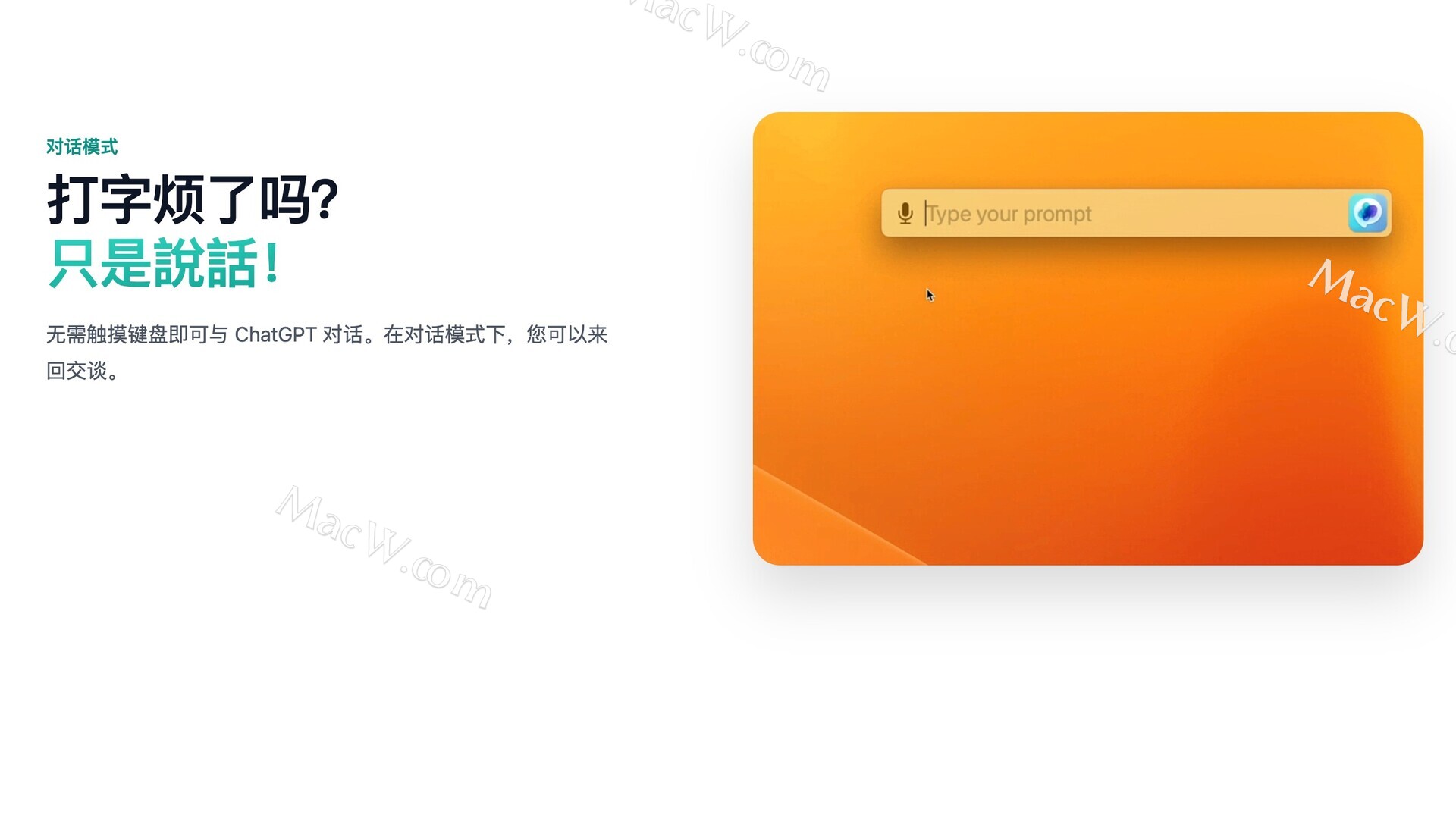 - 语音输入支持:除了传统的文字输入方式,MacGPT还支持语音输入,用户可以直接通过语音与ChatGPT进行交流,提高使用便捷性。
