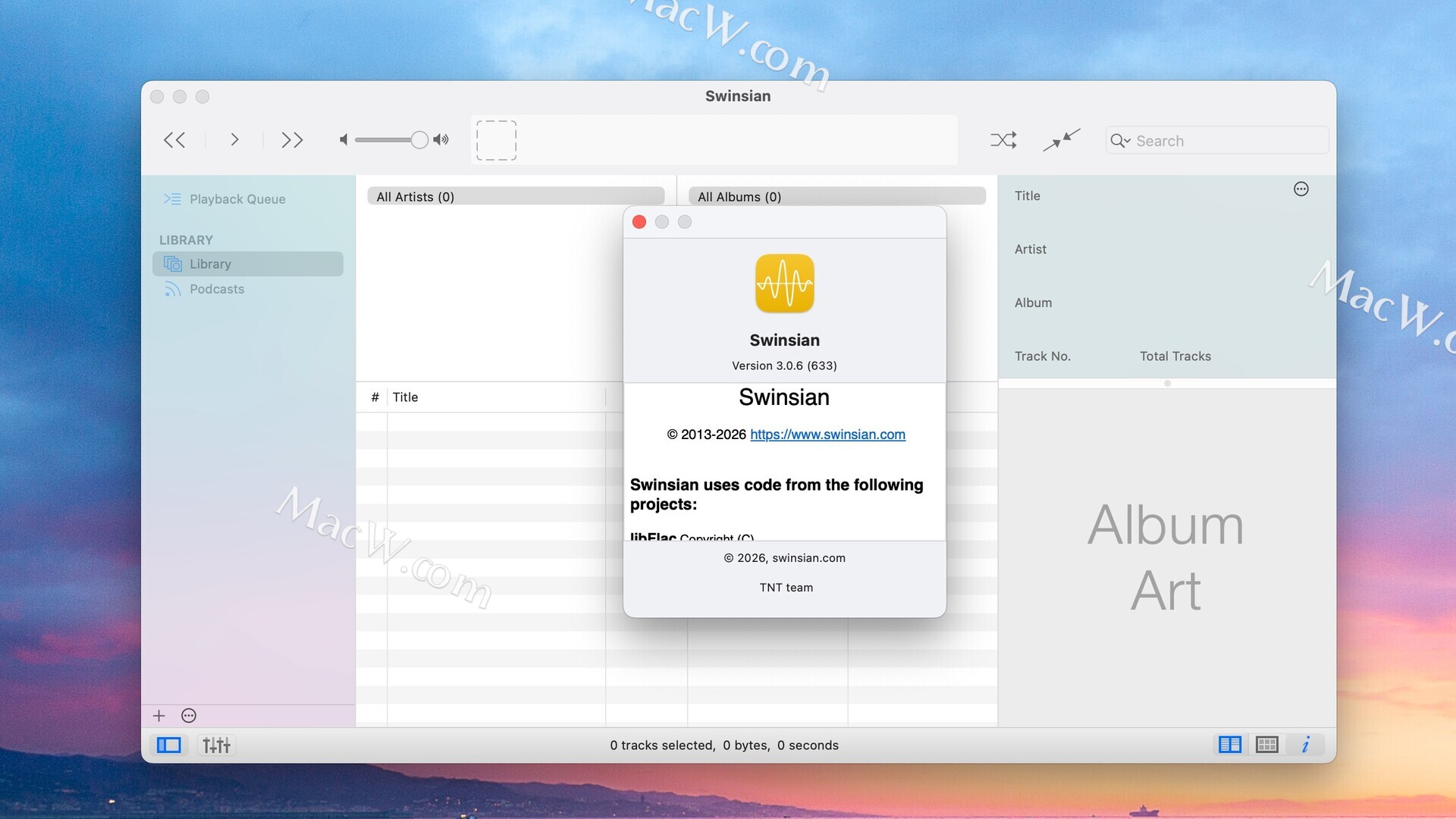 Swinsian mac版是一款适用于macOS的高级音乐播放器,它具有广泛的格式支持,文件夹监视,高级标签编辑功能,即使在最大的音乐库中也能做出响应。Swinsian激活版还可以管理自己的音频文件,可以自己根据自己的浏览方式浏览自己的音频文件,不需要那么繁琐的操作,还可以通过这款软件下载文件到移动设备。测试环境:MacOS 26.2