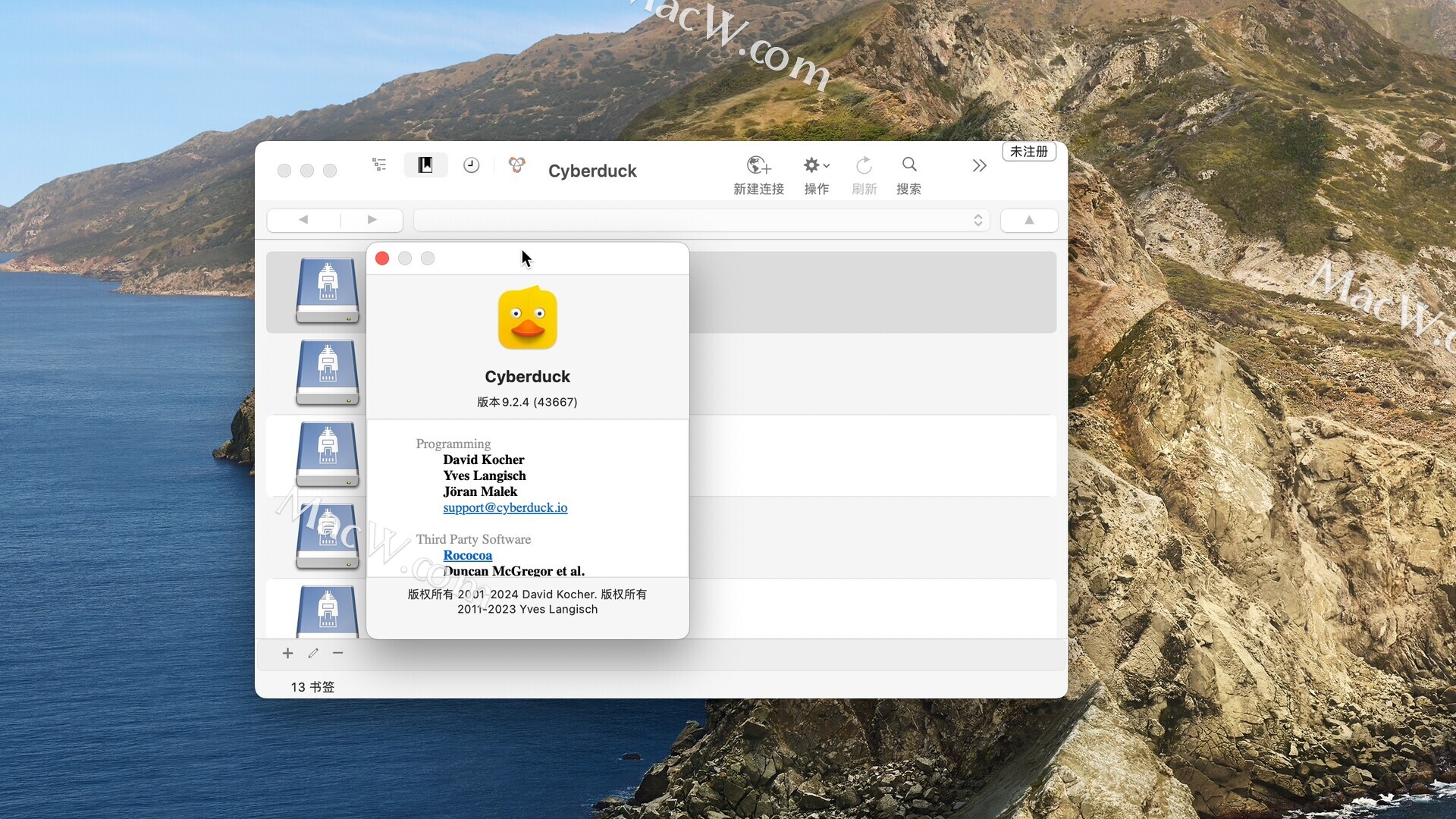 v8.7.0官方版Cyberduck for Mac拥有简单明了的操作界面,使用非常的简单,同时Cyberduck for Mac版还支持WebDAV 和 Amazon S3 浏览与文件的传输等,非常的优秀!测试环境:MacOS 13.2