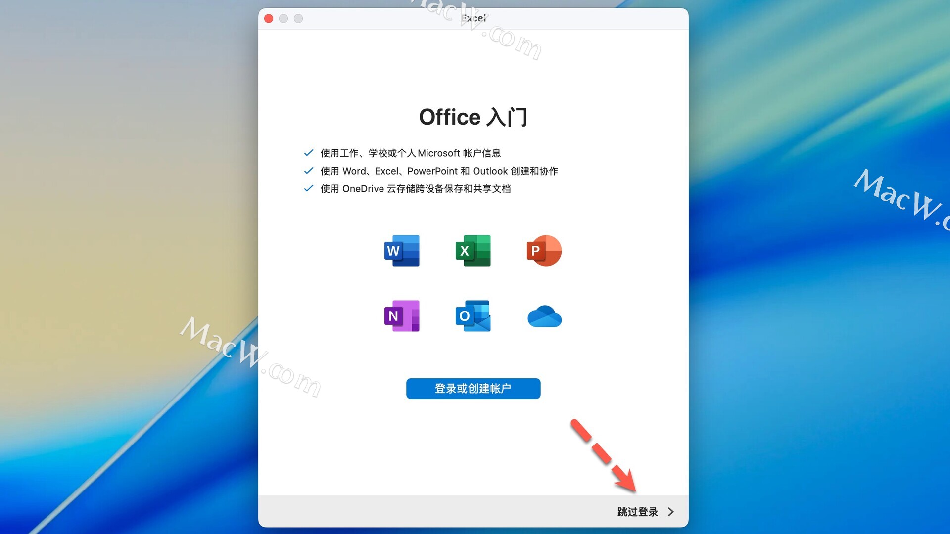 M 用户安装完成后,使用前必须跳过登录,不登陆状态下使用office