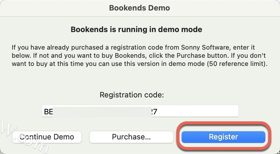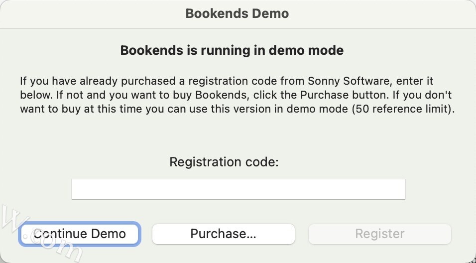 - 安装完成后打开Bookends Mac,弹出注册窗口,把注册窗口放在一旁