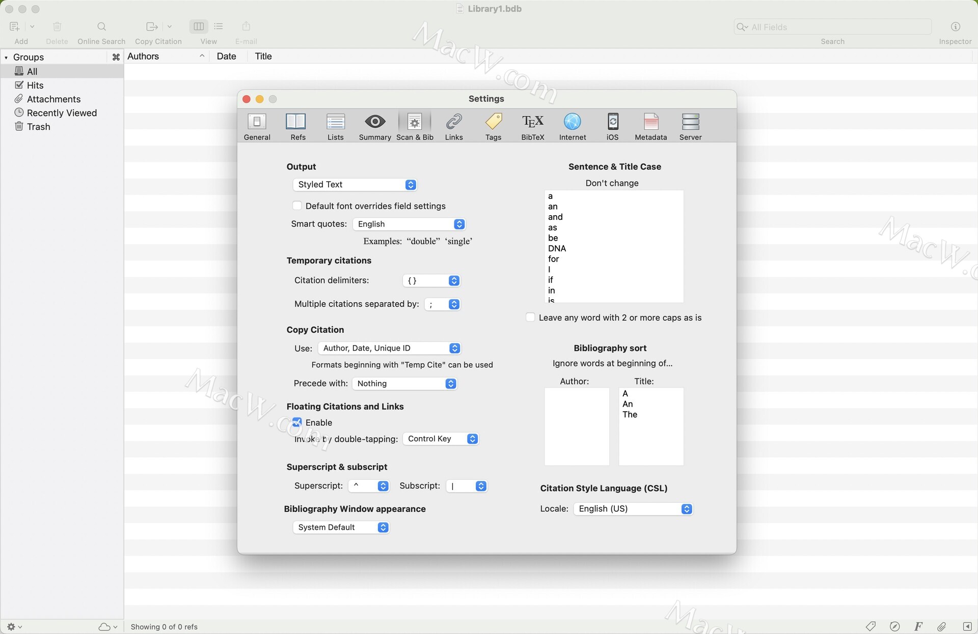 使用 Biblio -> 查找并导入 CSL 样式从Zotero 样式存储库下载 CSL 样式。样式文件将导入到“自定义格式”文件夹中并启用以供使用。您可以通过将已有的 CSL 样式文件拖放到库窗口来安装和启用它们。或者,您可以将它们在 Finder 中移动到“自定义格式”文件夹,并在格式管理器中启用它们。
